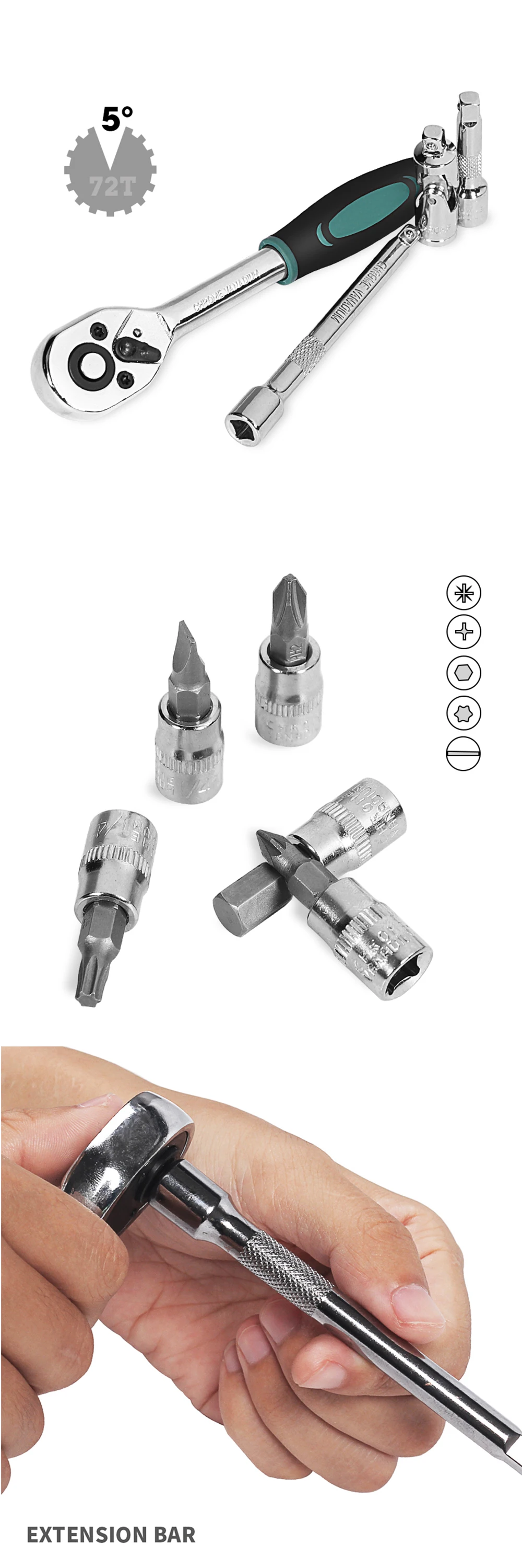 72 зуб бокс с храповым механизмом конец требует Минимальный 5 ° для перемещения крепежа против 30 ° для стандартных гаечных ключей