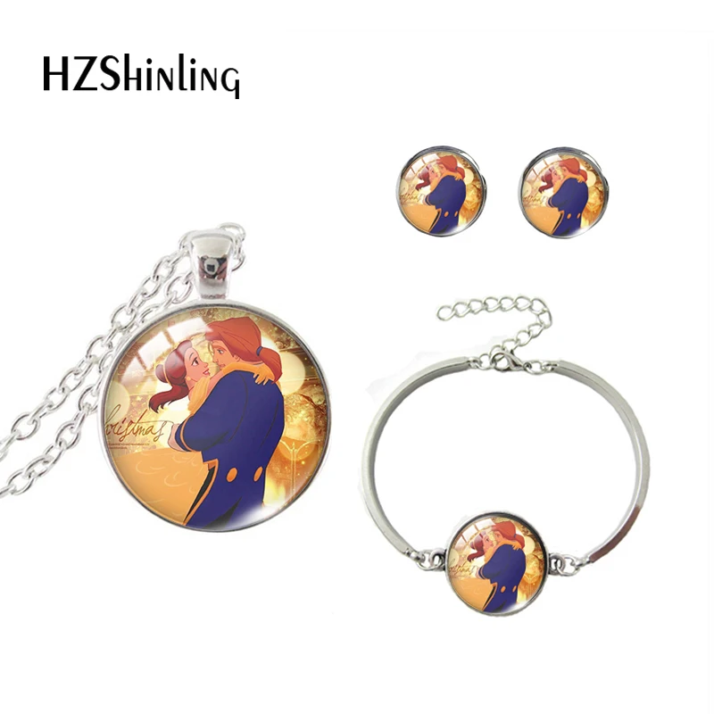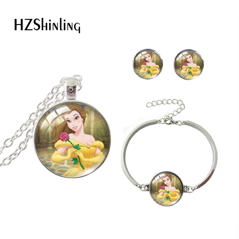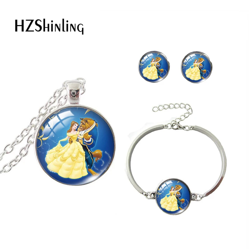 Серьги-гвоздики и браслет Красавица Чудовище с Круглым Куполом колокольчиком - купить