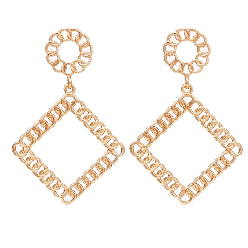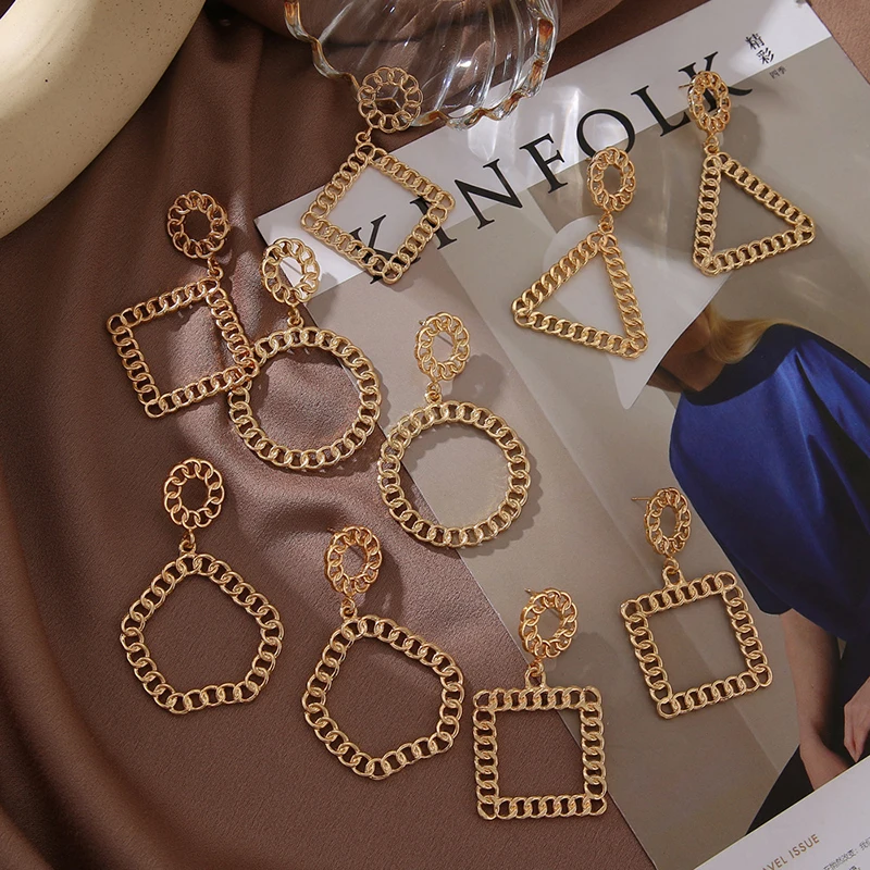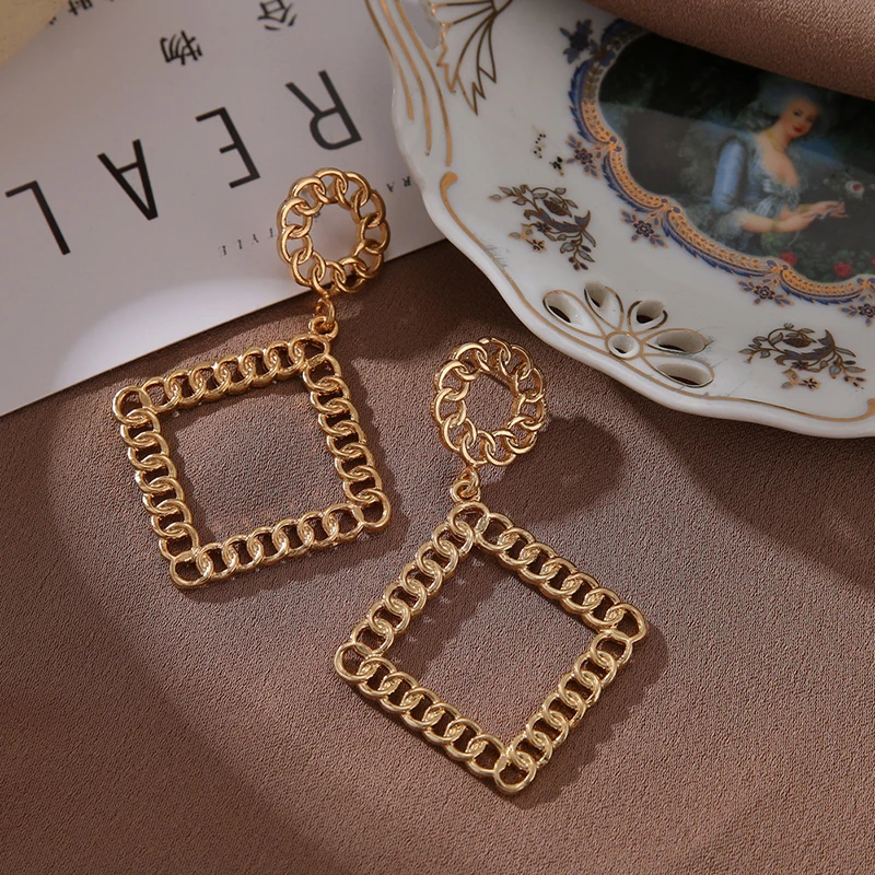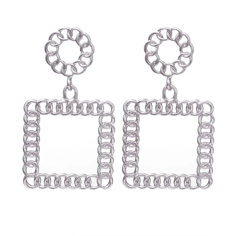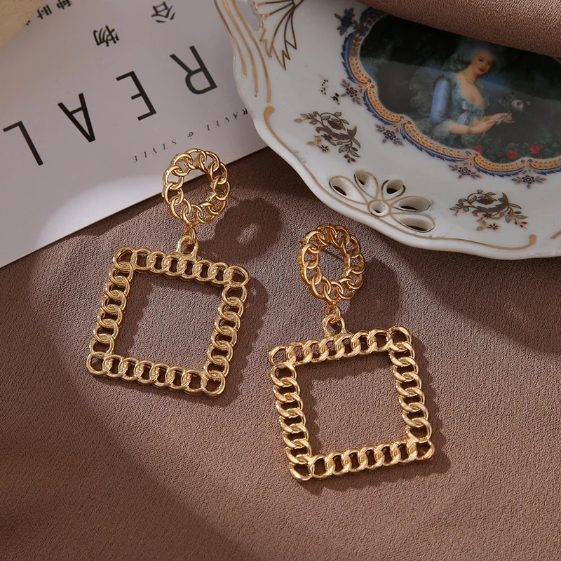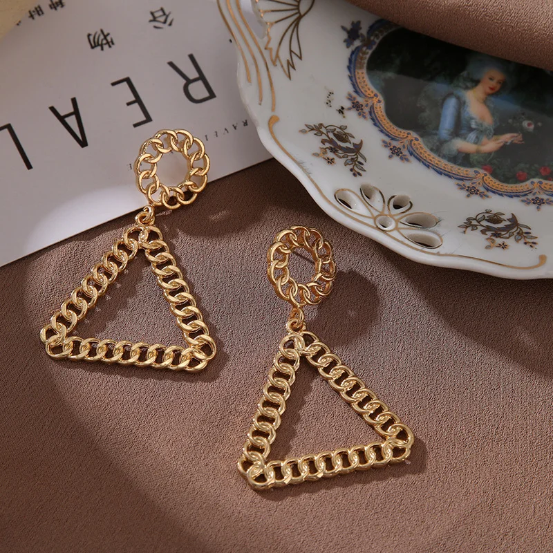 Винтажные серьги-подвески золотого и серебряного цветов квадратные треугольные - купить