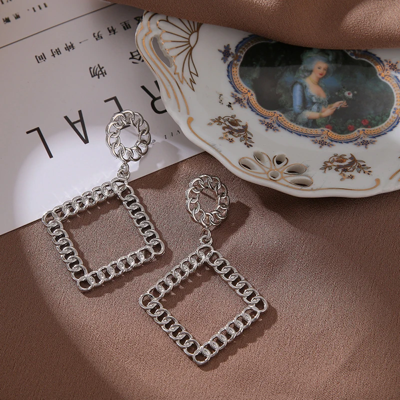 Отзывы о Винтажные серьги-подвески золотого и серебряного цветов квадратные треугольные