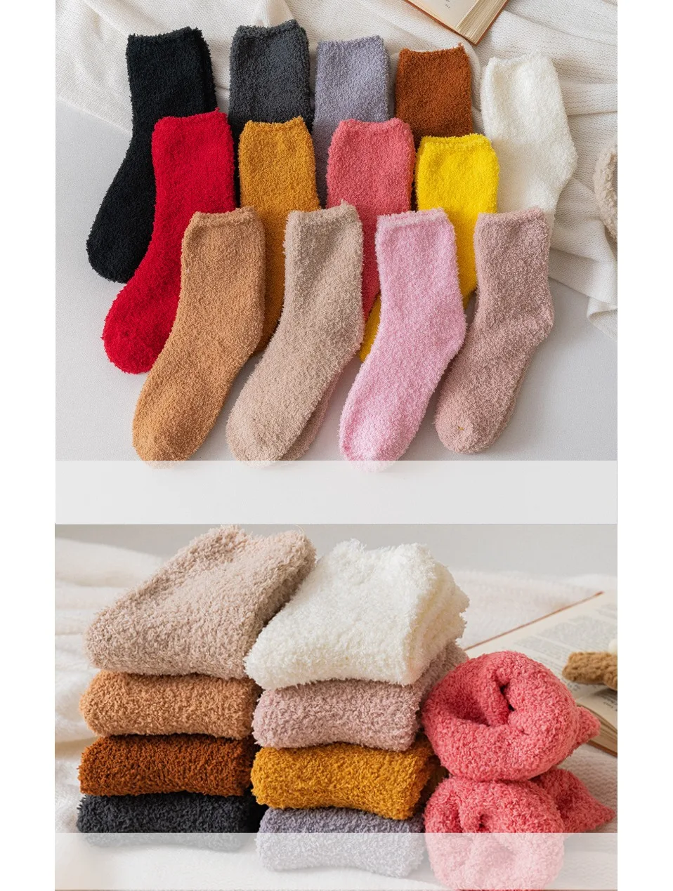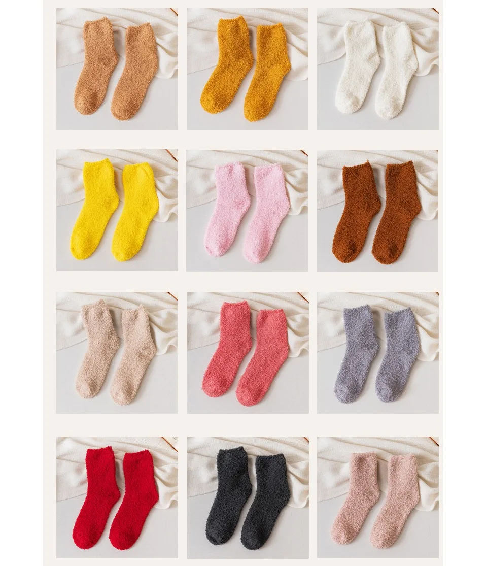 Женские носки ярких цветов для девочек Зимние теплые плюшевые однотонные - купить