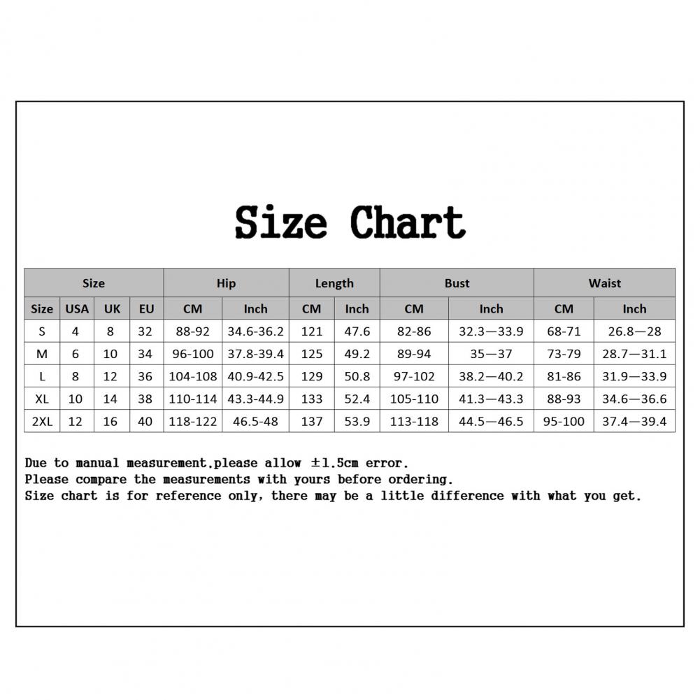 Размер: 2XL, обхват груди: 113-118 см/44,5-46,5 дюйма, обхват талии: 95-100 см/37,4-39,4 дюйма, обхват бедер: 118 см-122 см/46,5 "-48", Длина: 137 см/53,9 "(прибл.)