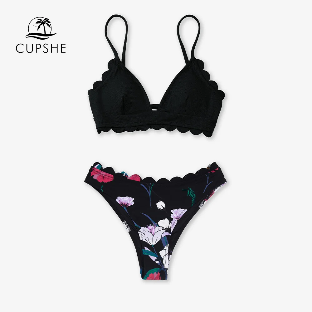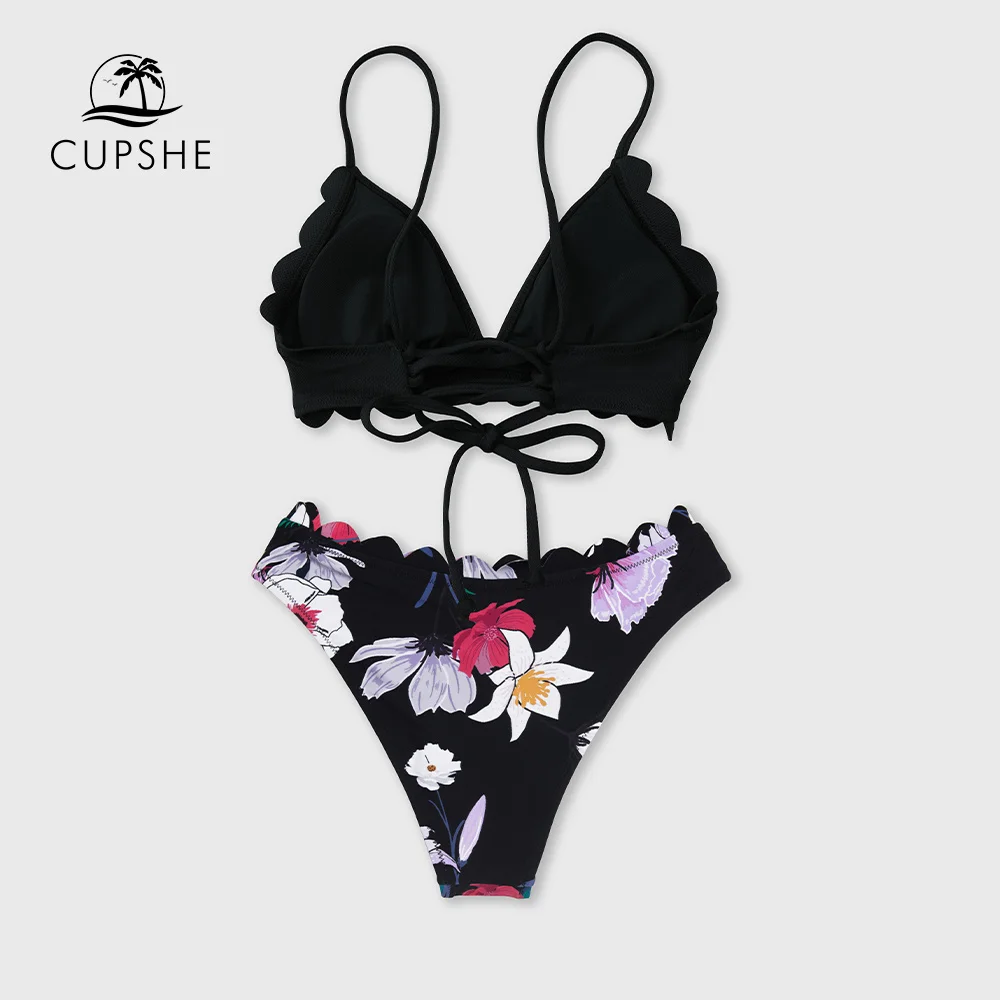 Купить CUPSHE на шнуровке черный Цветочный v-образный вырез низкая талия бикини комплект