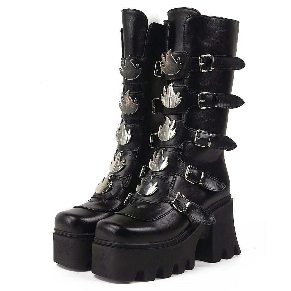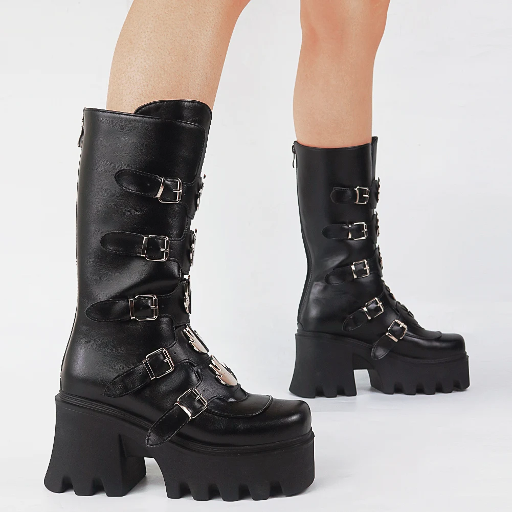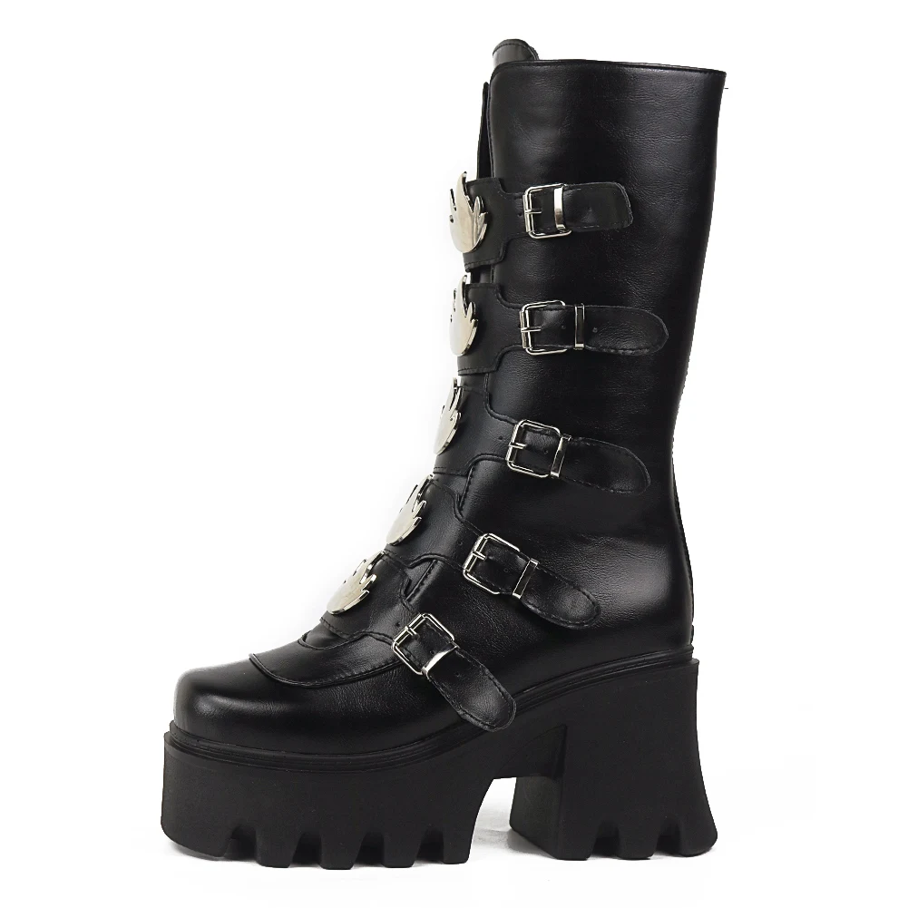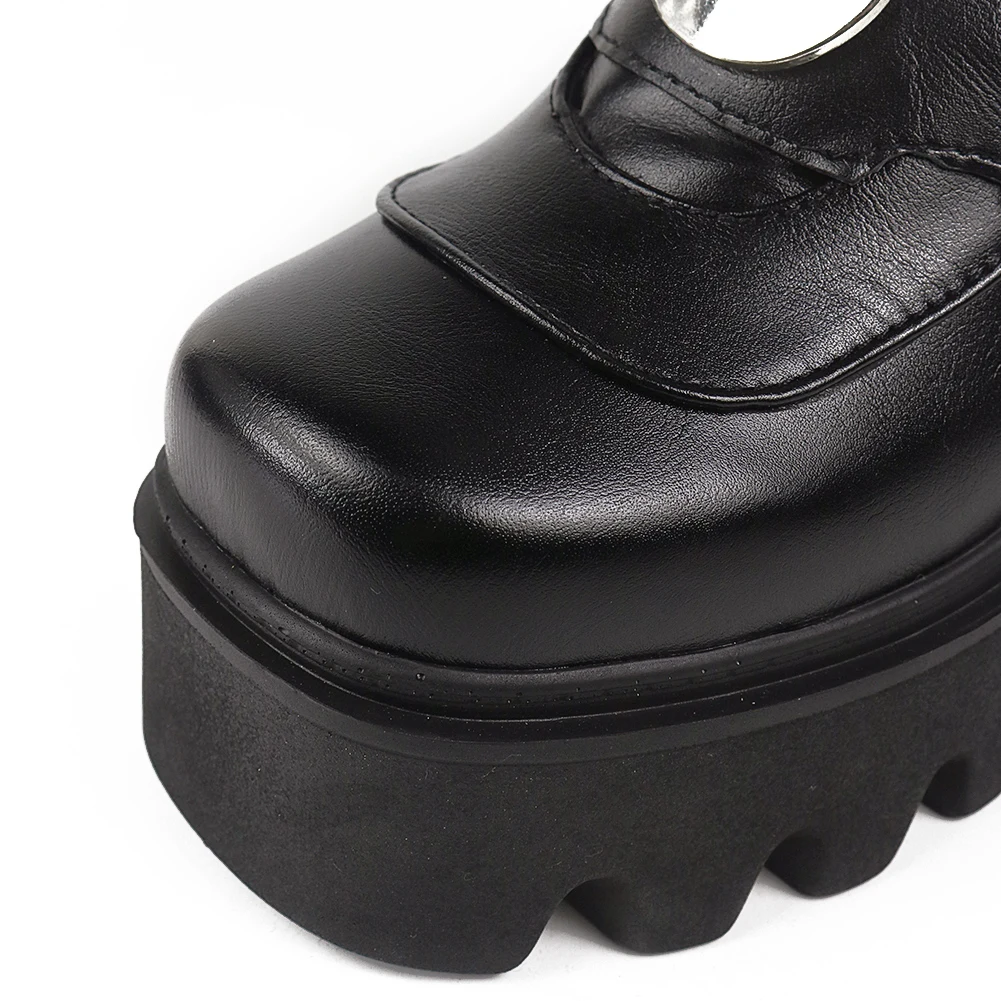 Купить Женские ботинки BONJOMARISA стильные мотоциклетные туфли на платформе молнии каблуке