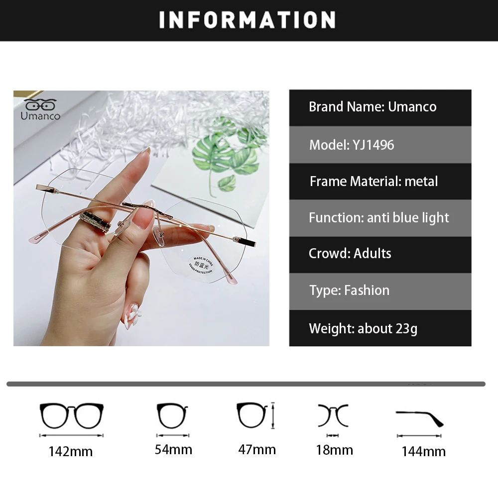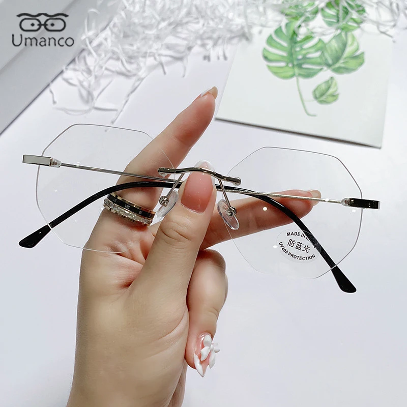 Отзывы о Umanco Hexagon Rimless Myopia Glasses for Women Men Fashion Anti Blue Light Computer Eyeglasses Students Near Sight Eyewear Аксессуары