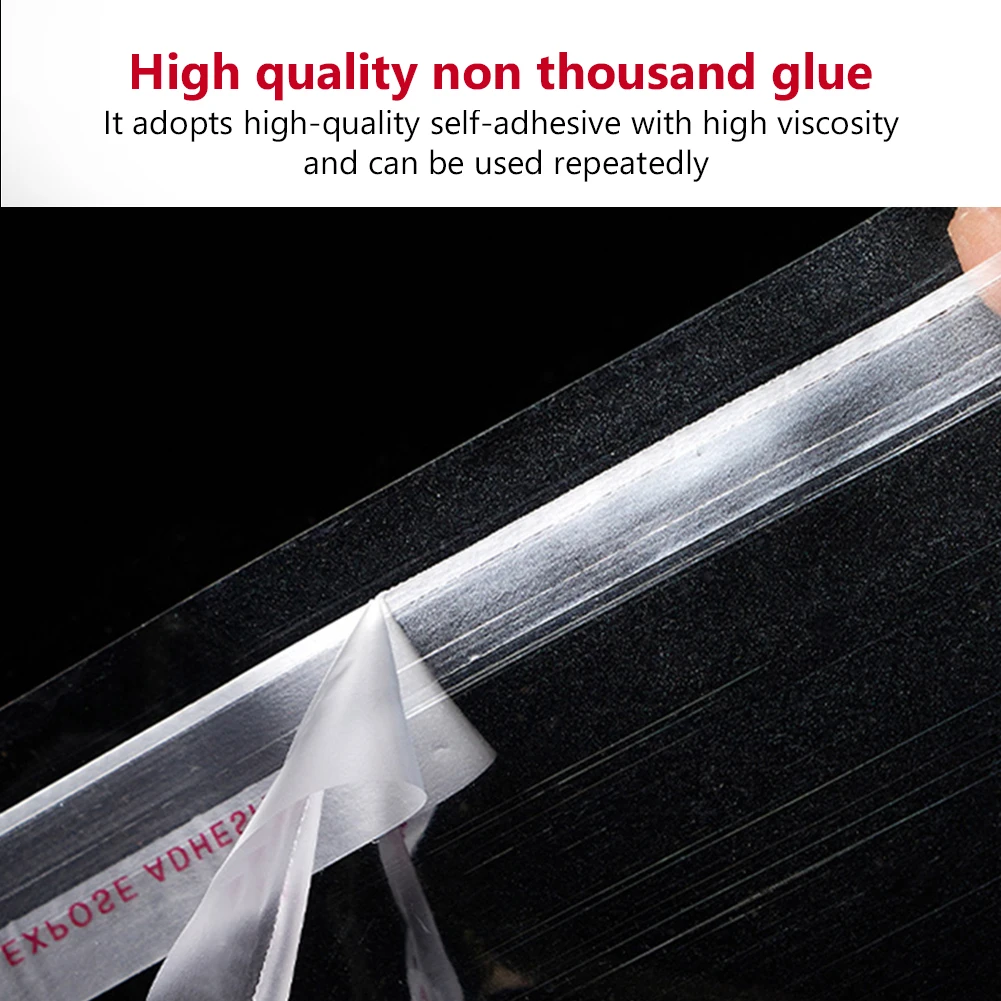 Каждый пластиковый пакет содержит расширенную клейкую уплотнительную ленту, самоуплотняющуюся и не требующую скручивания стяжек, может плотно закрывать и дольше сохранять вашу пищу свежей.