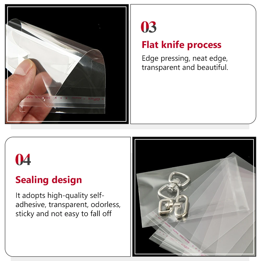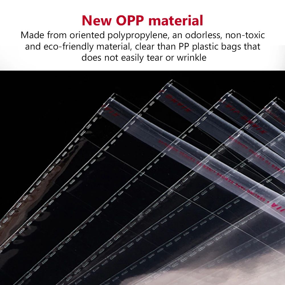 Самозапечатывающиеся целлофановые пакеты изготовлены из ориентированного полипропилена, без запаха, нетоксичного и экологически чистого материала, прозрачного, чем пластиковые мешки из ПП, который не рвется и не мнется, отлично подходят для длительного хранения.