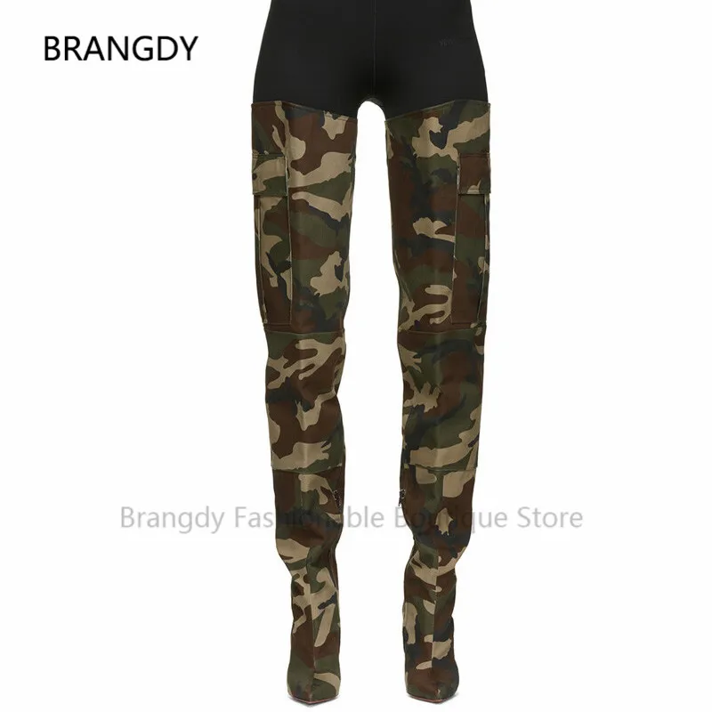 • 100% ручная работа; Зеленые камуфляжные Сапоги выше колена