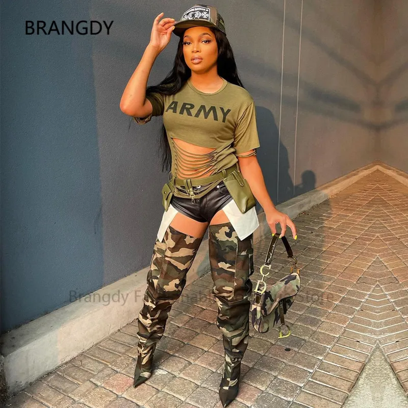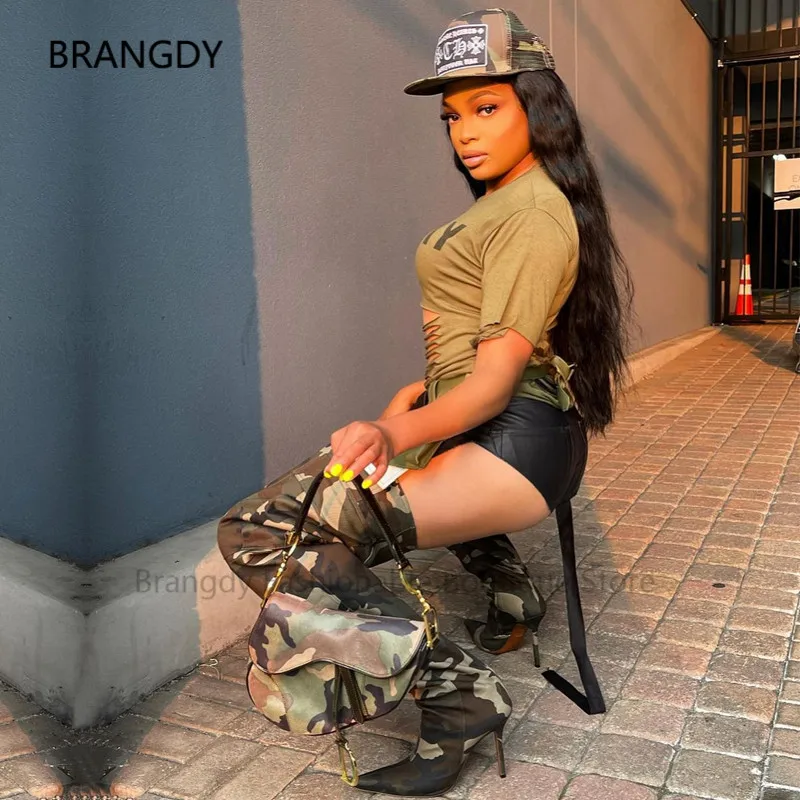 Купить Женские камуфляжные Сапоги выше колена зеленые армейские высокие сапоги с