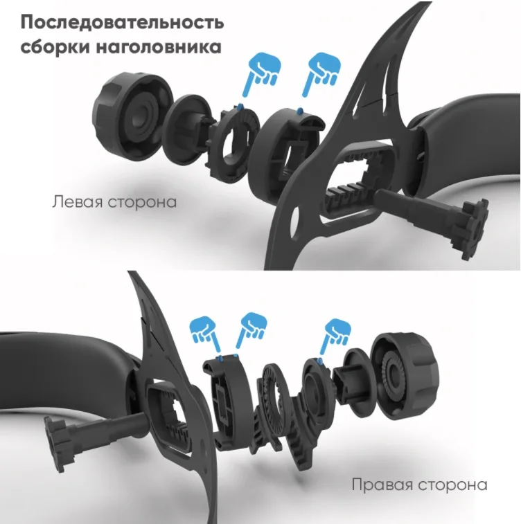регулировать удаленность маски от лица, высоту посадки маски на голове и