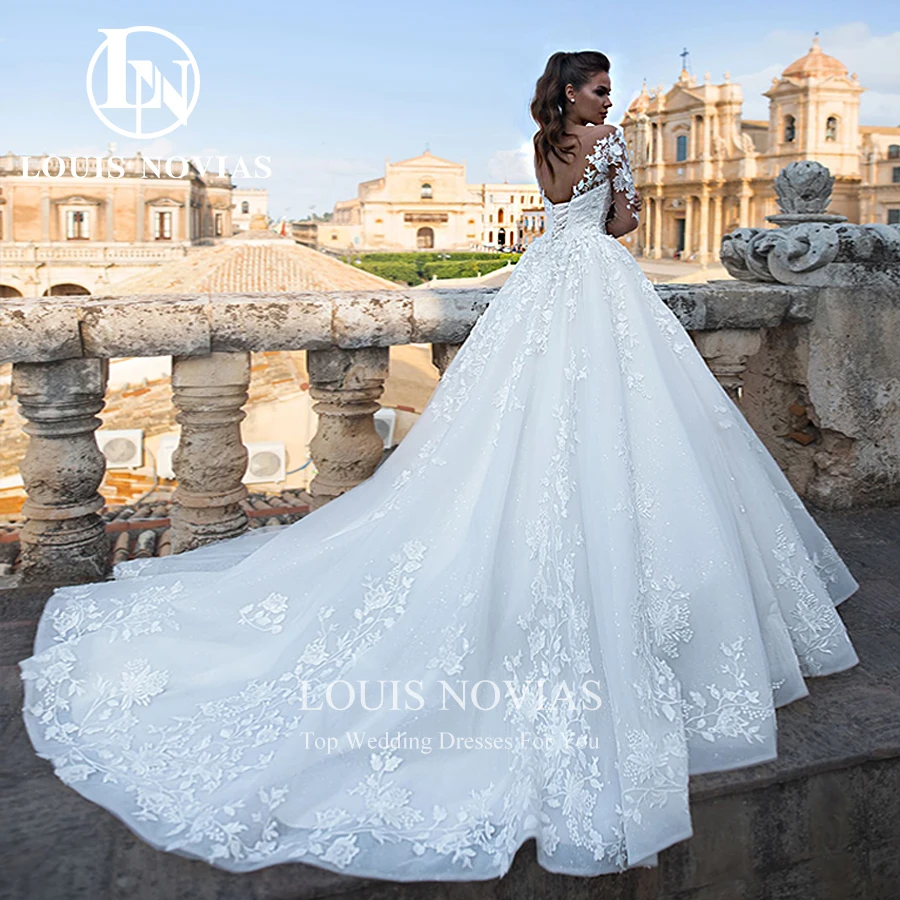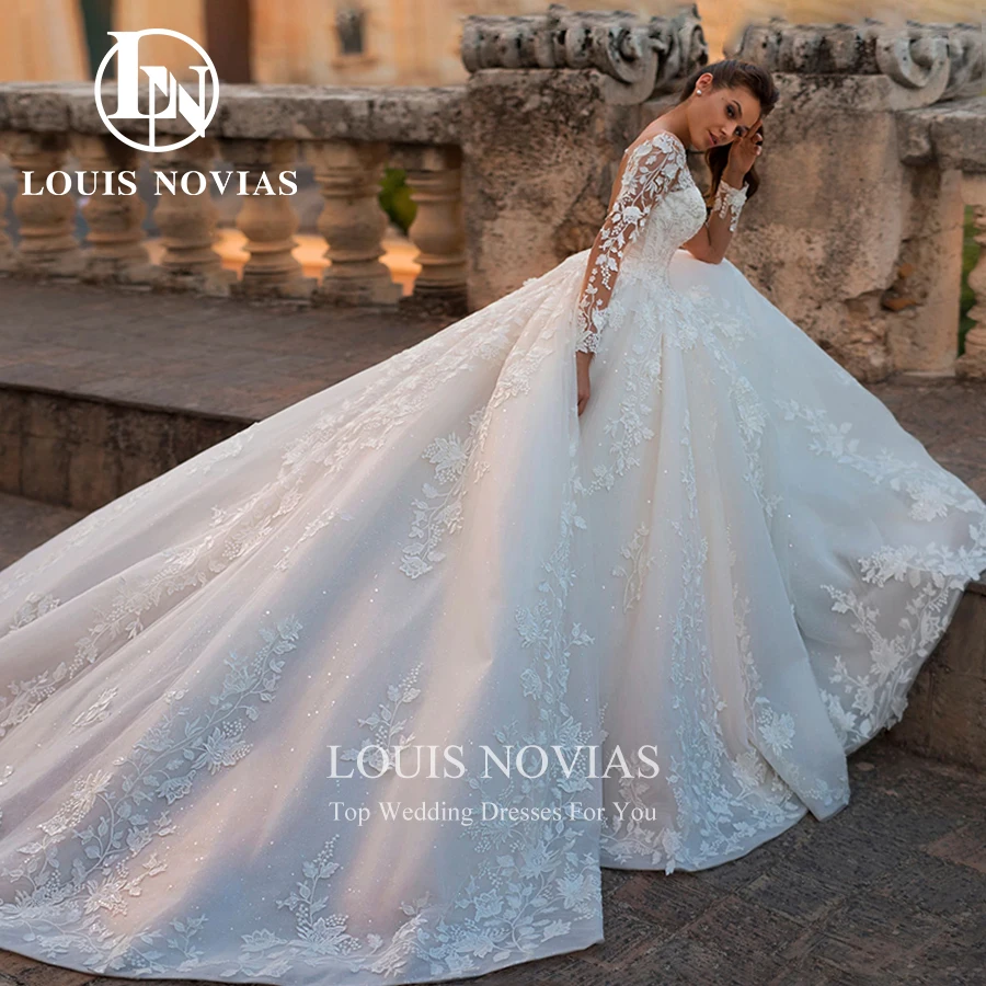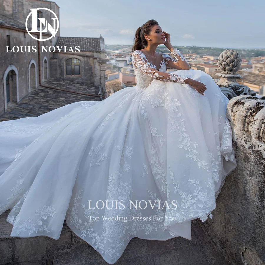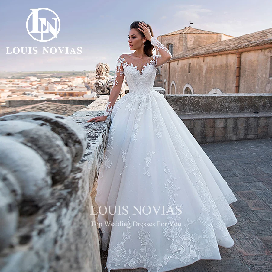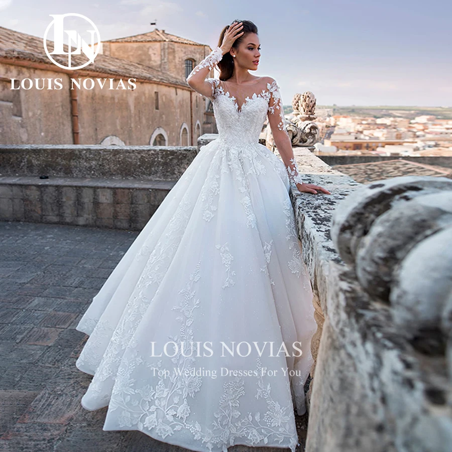 Купить Женское свадебное платье с бусинами LOUIS NOVIAS белое длинным рукавом со шнуровкой