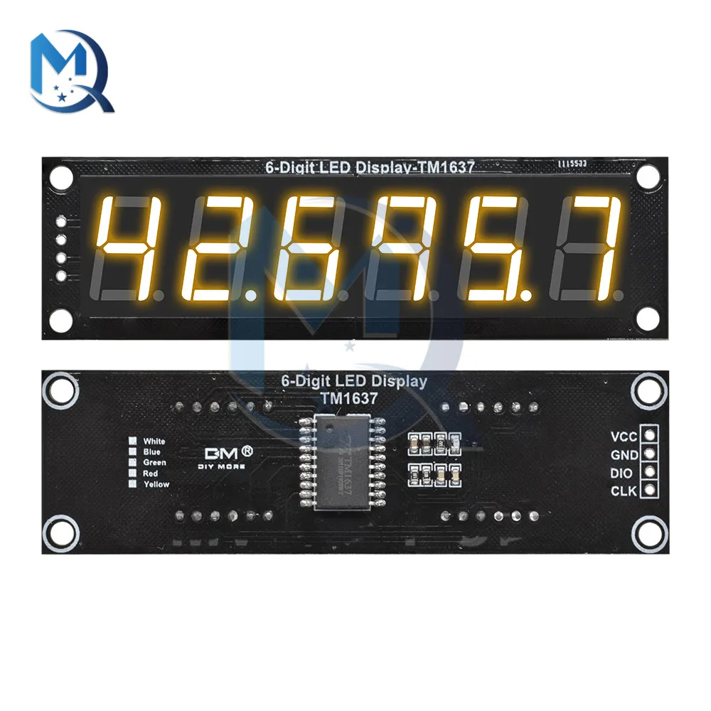 0,56 дюймов 6-значный цифровой 7 сегментов цифровая трубка светодиодный Дисплей модуль десятичная система TM1637 Часы светодиодный Экран борту модуль для ArduinoОписание:Это является одним из основных 6-значный 7-сегментный дисплей модуль. На дисплее отображается каждая Десятичная точка. Модуль подключается к цифровому I/O через 2 контакта.Для библиотеки Arduino: TM1637.hТрубка Nixie: 0,56 дюймаДрайвер IC: TM1637Цвет: белый/красный/желтый/зеленый/синийРазмер дисплея: 76x19 ммНапряжение: 5 вольтПосылка включает в себя:Один 0,56 дюймовый 6-значный цифровой модуль TM1637 белый/красный/желтый/зеленый/синий дисплей