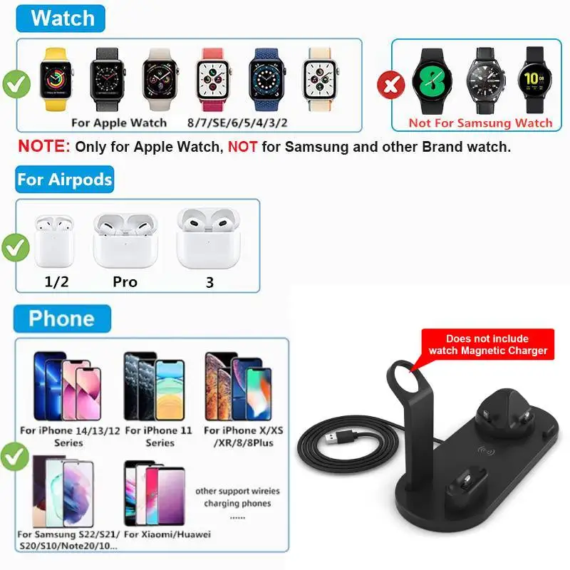 Беспроводное зарядное устройство 4 в 1 Qi док-станция подставка для быстрой - купить