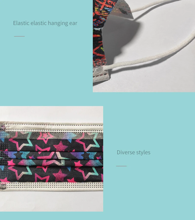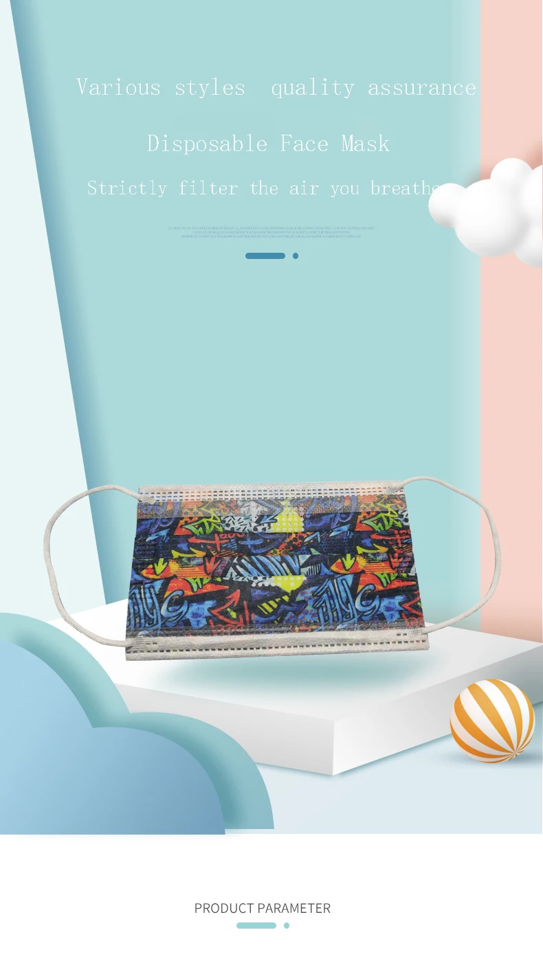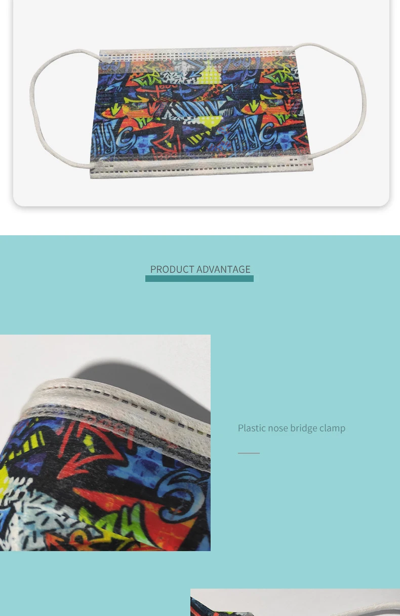 Цветная одноразовая маска с граффитиМатериал: выдувная ткань из расплава + Нетканая ткань