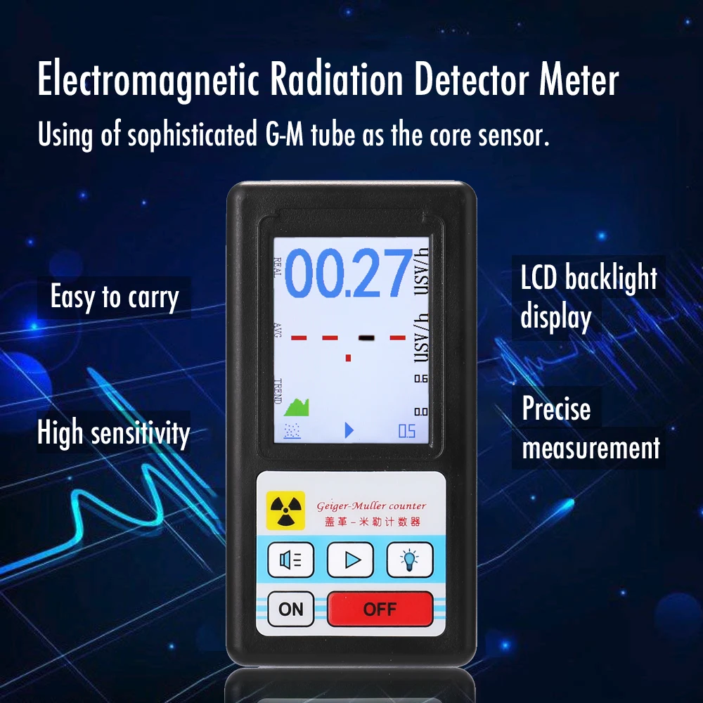 С помощью ЖК-дисплея на дисплее отображается четкий рабочий статус прибора от ядерной радиации, и вы можете быстро и точно прочитать необходимые вам данные.