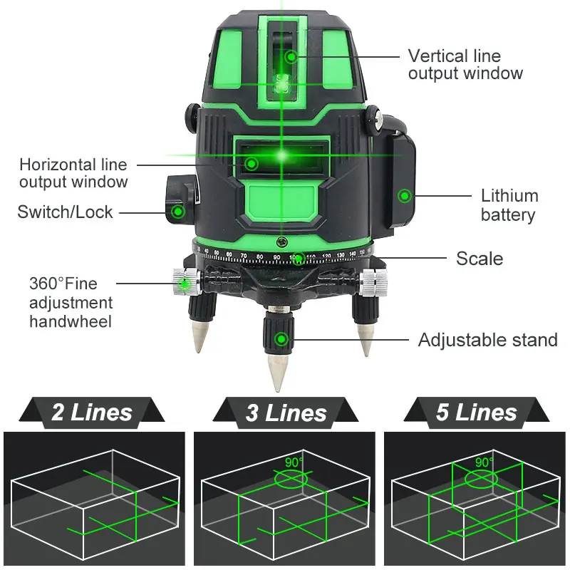 1. Professional self-leveling vertical horizontal Lasers features 2/3/5 lines for a broad array of alignment and precise measurement.