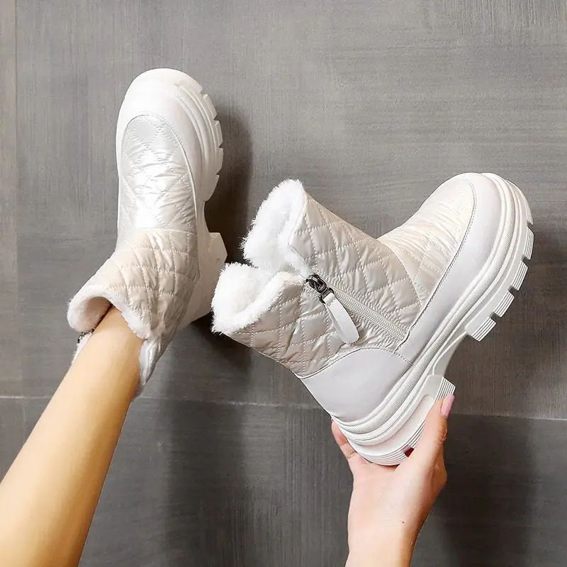 Зимние ботинки для женщин ботильоны на толстой плюшевой платформе женская - купить