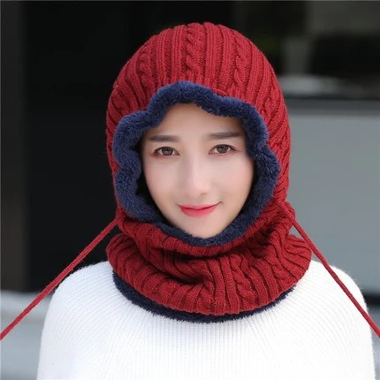 Отзывы о Новая зимняя вязаная шапка унисекс Шапка-бини с защитой шеи меховой подкладкой