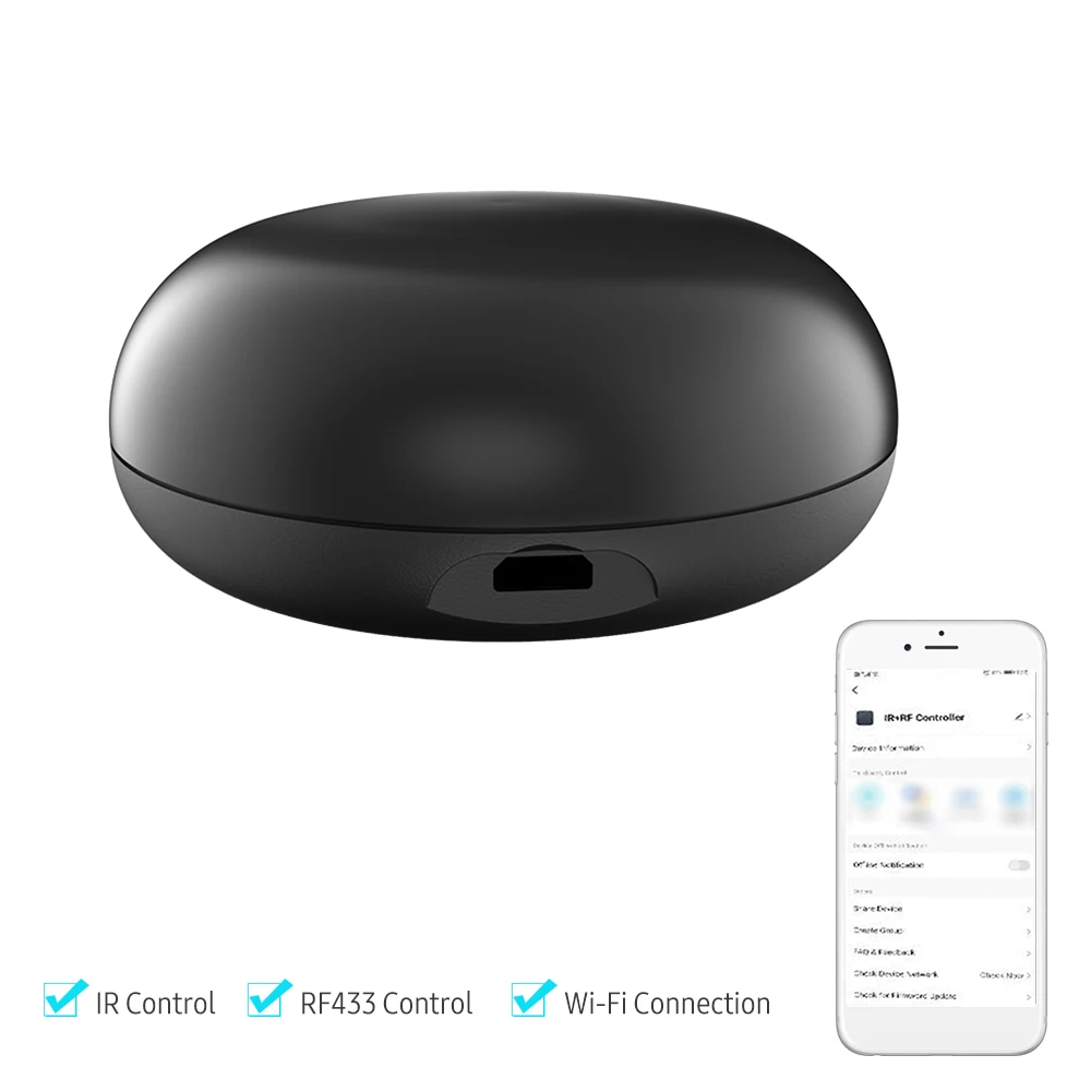 Умный ИК + RF433 контроллер: 7 м инфракрасное расстояние, 360 градусов инфракрасный угол, легко управлять. Он также поддерживает управление RF433.