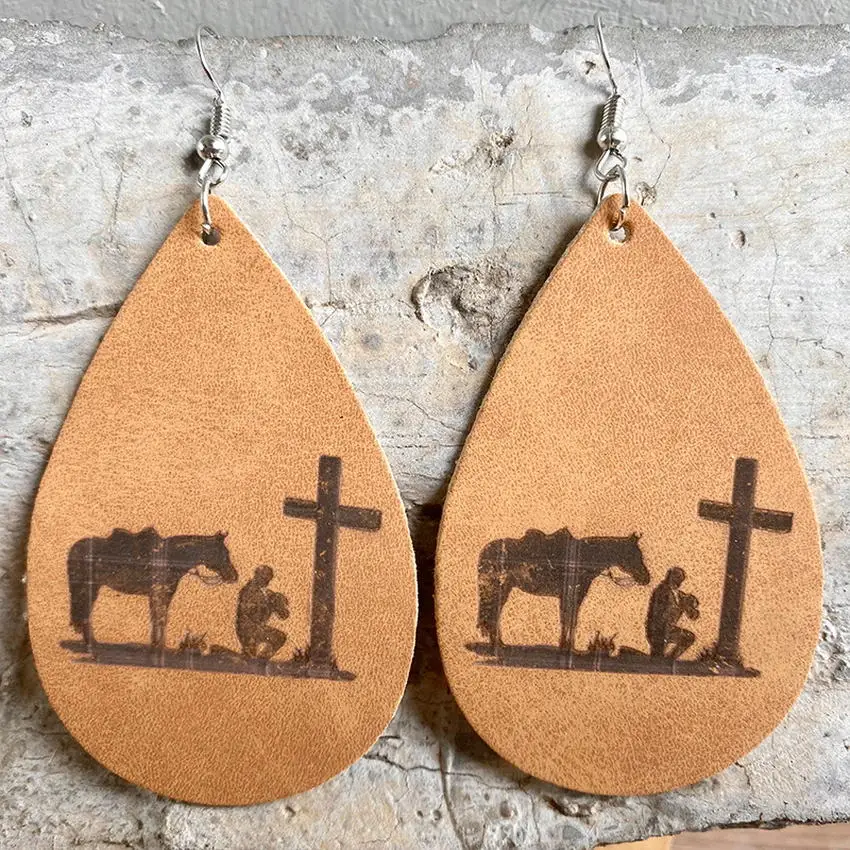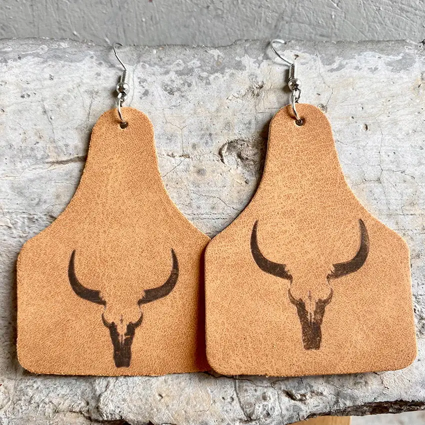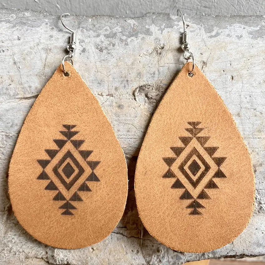 Пасторальные ЗАПАДНЫЕ КОЖАНЫЕ серьги для женщин ацтекский ковбой Таурен эскиз с принтом массивные серьги пастушки ювелирные изделия оптовая продажа
