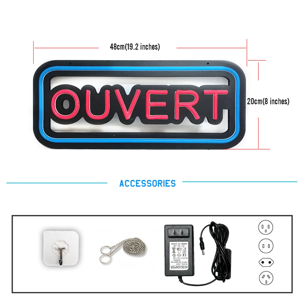 Отзывы о Оптовая световая вывеска Ouverte OPEN с LED-подсветкой для бара вечеринки рождества и визуального искусства витрин магазинов декора стен. Питание от DC 12V