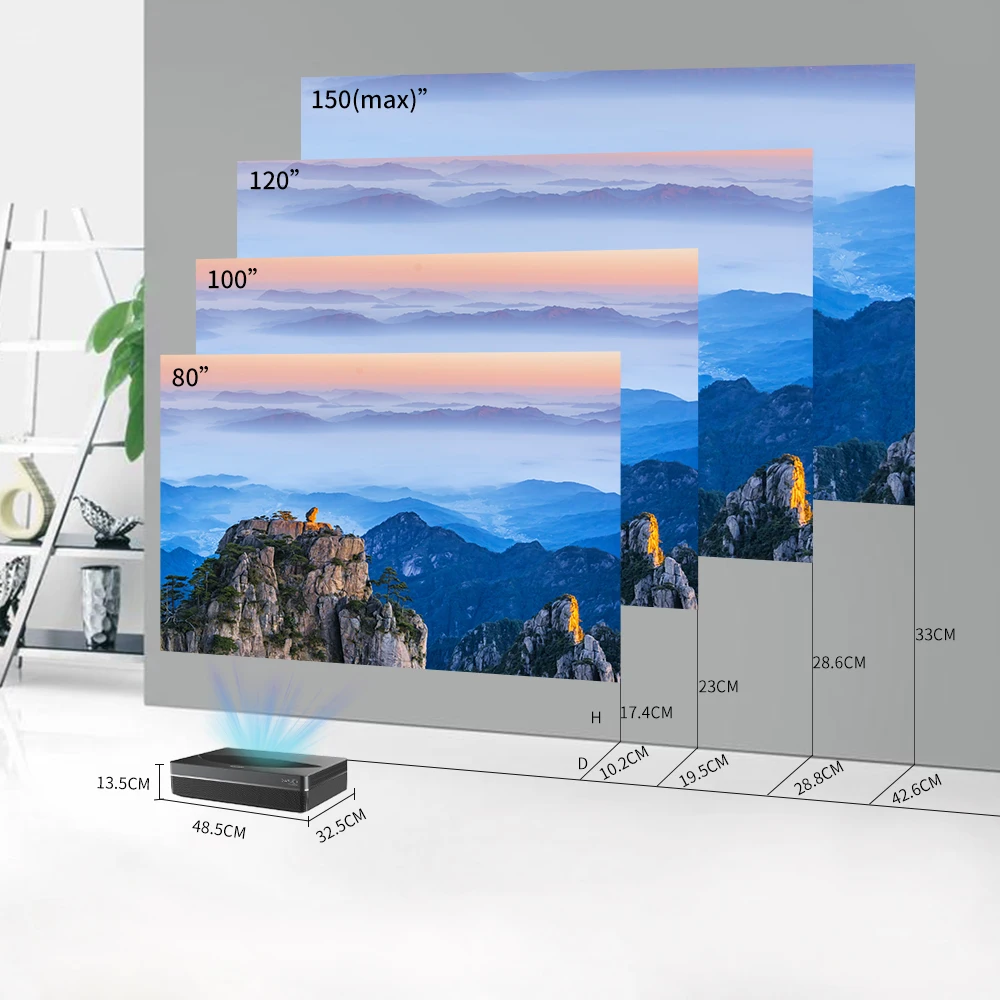 ● Ультра короткое соотношение 0,21: 1, большие изображения также могут быть спроектированы в близком диапазоне.