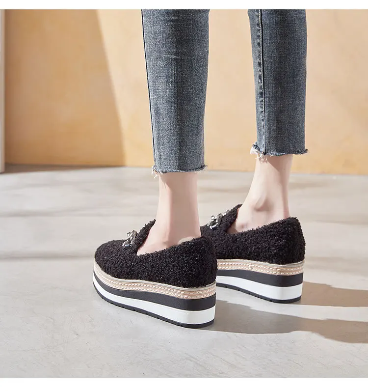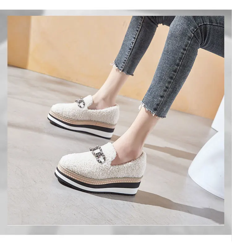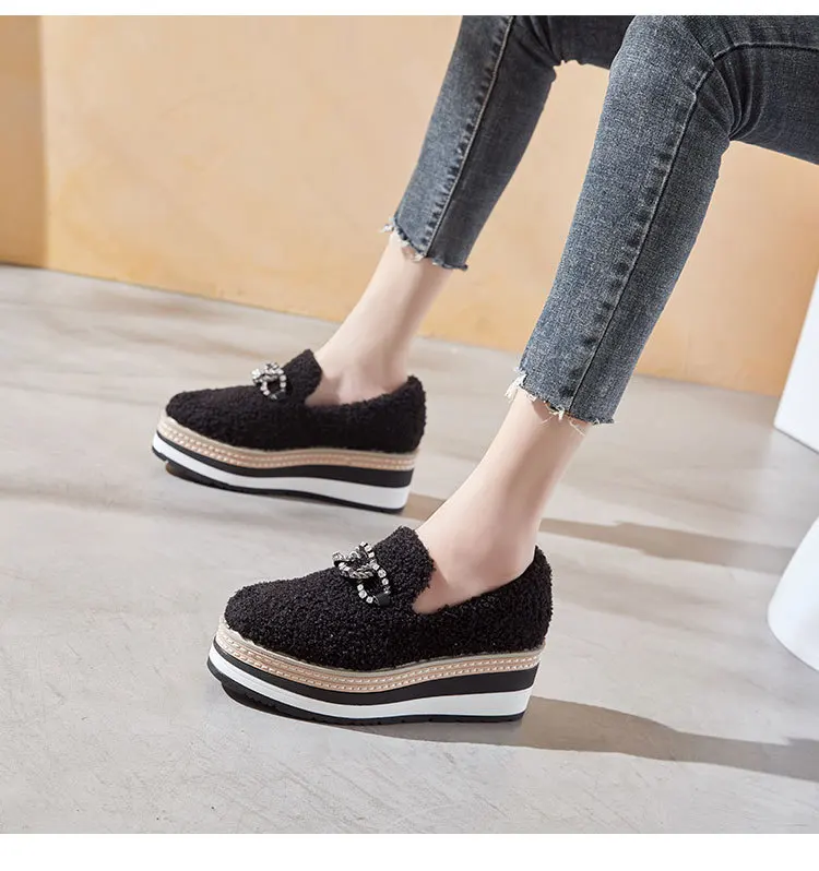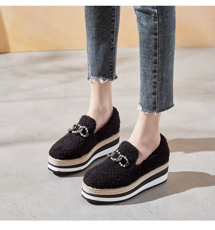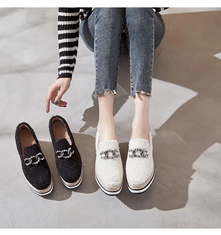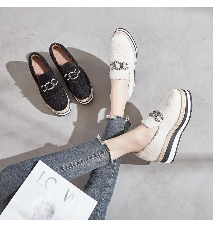 Отзывы о Женские туфли на платформе из овечьего меха броги хрустального с цепочками новый