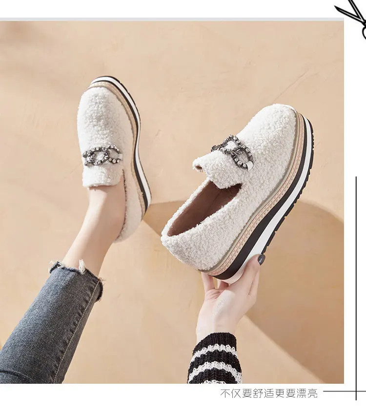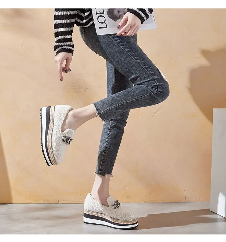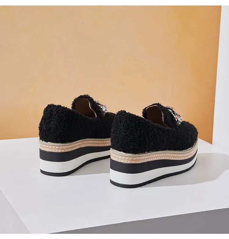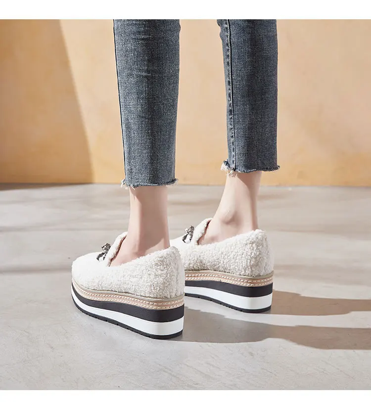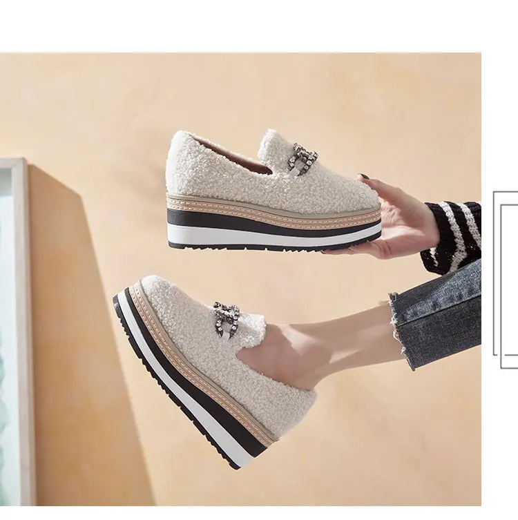 Отзывы о Женские туфли на платформе из овечьего меха броги хрустального с цепочками новый