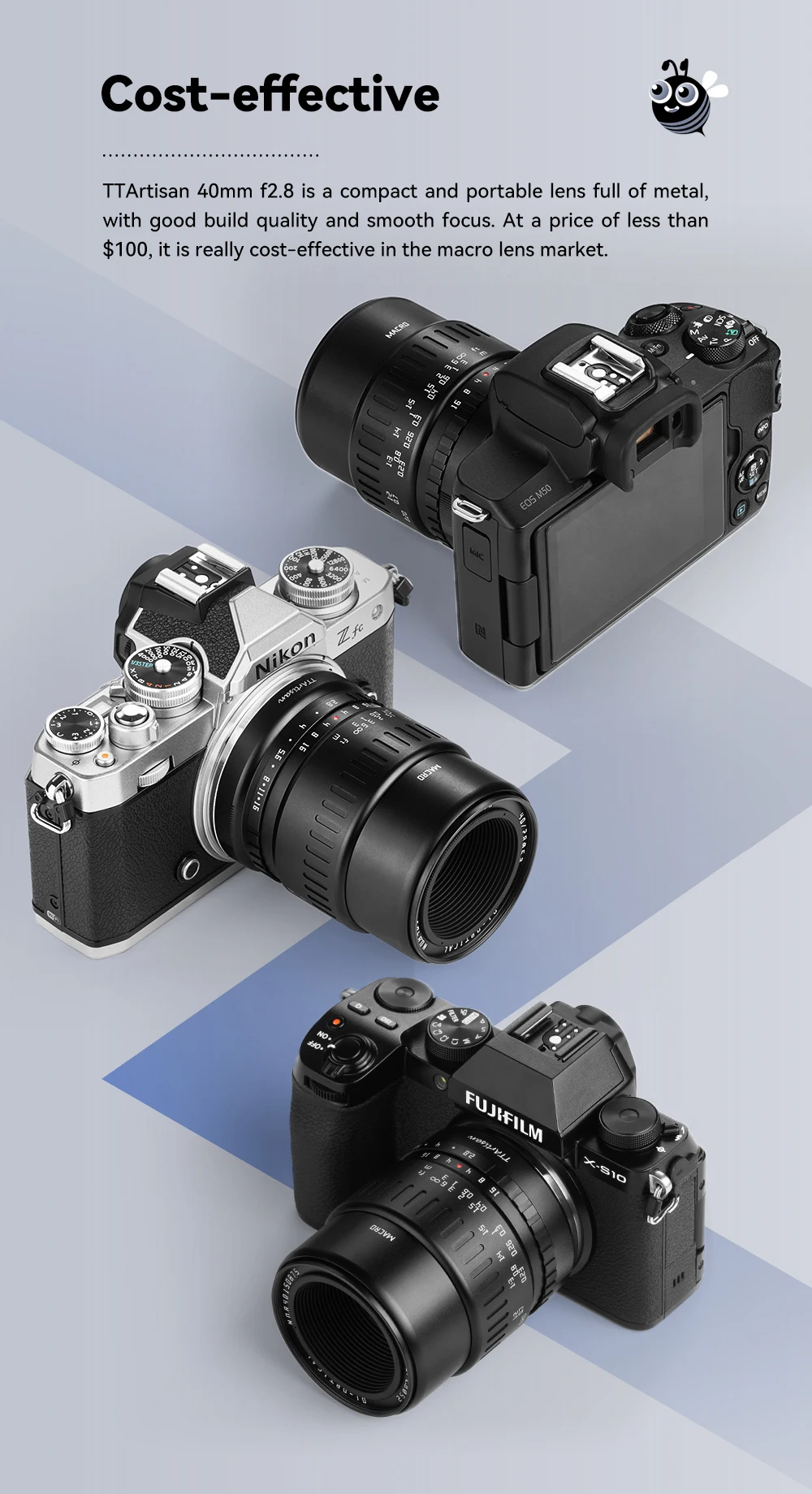 Отзывы о TTArtisan 40 мм F2.8 макрообъектив для SONY E FUJI X Canon M RF Panasonic Olympus M4/3 Nikon Z ZFC L mount MF