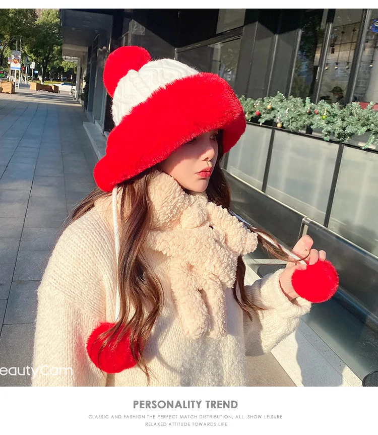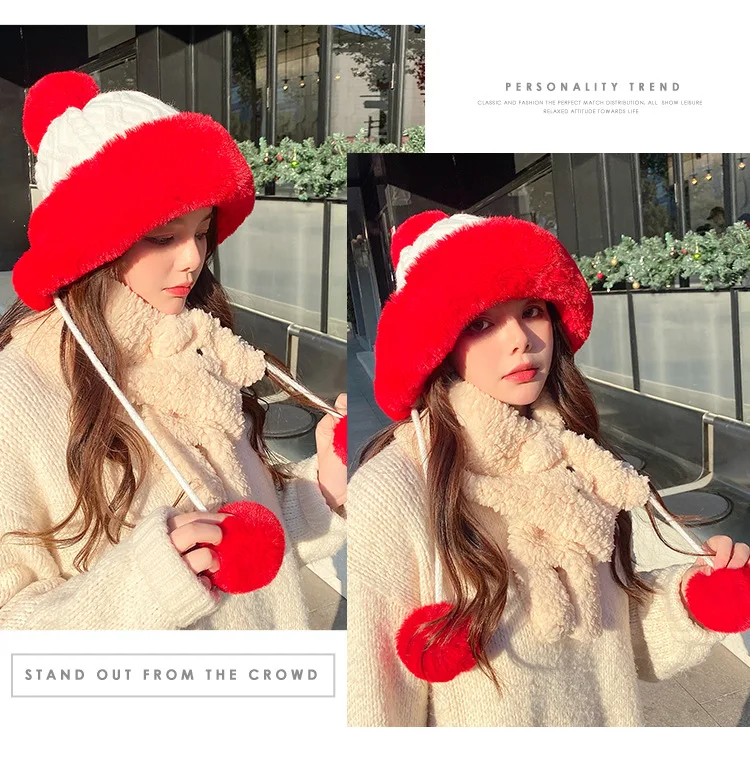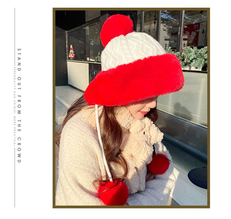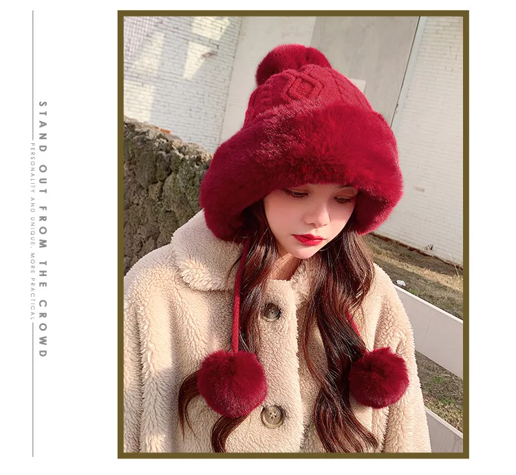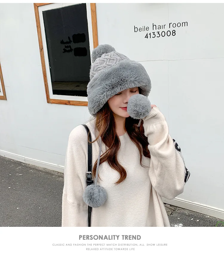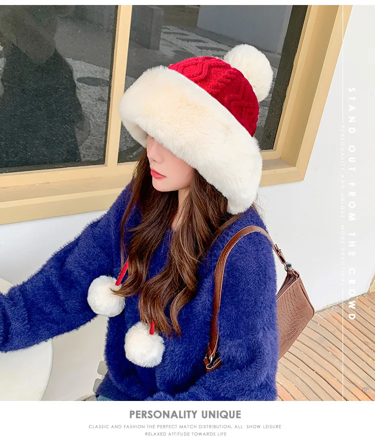 Осенне-зимняя женская шапка с большим меховым помпоном, шерстяная пряжа, уличные теплые вязаные шапки, однотонная бархатная утепленная кашемировая Дамская шапка