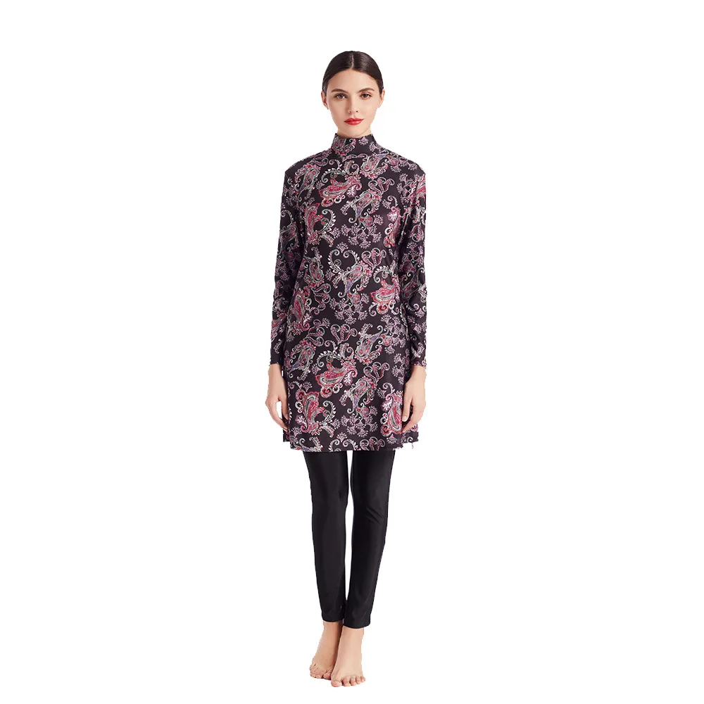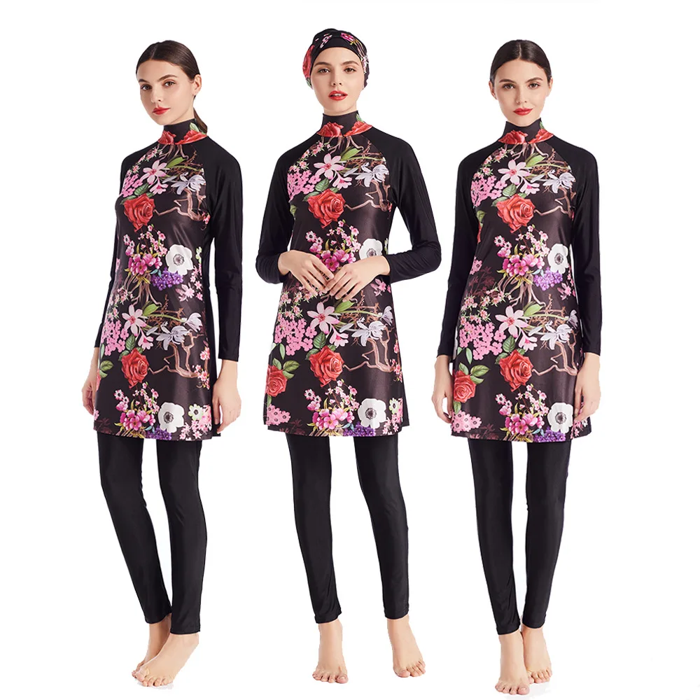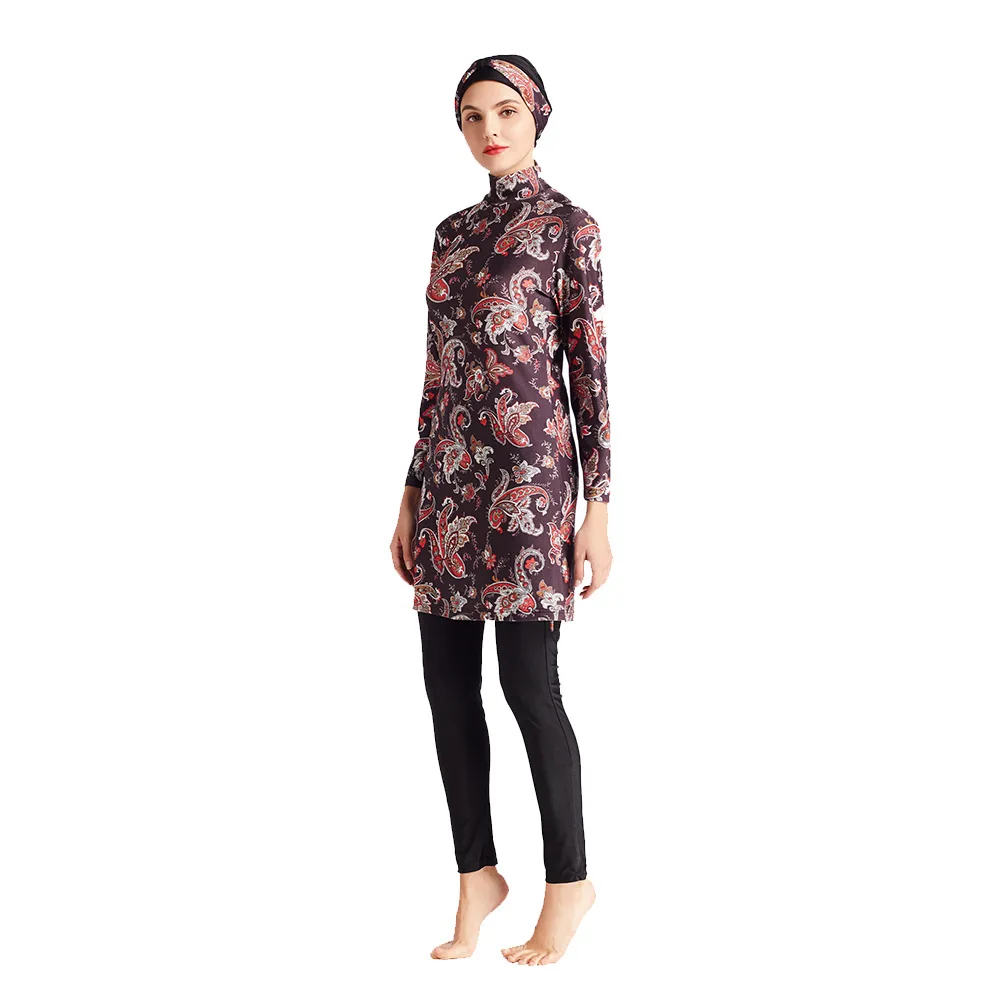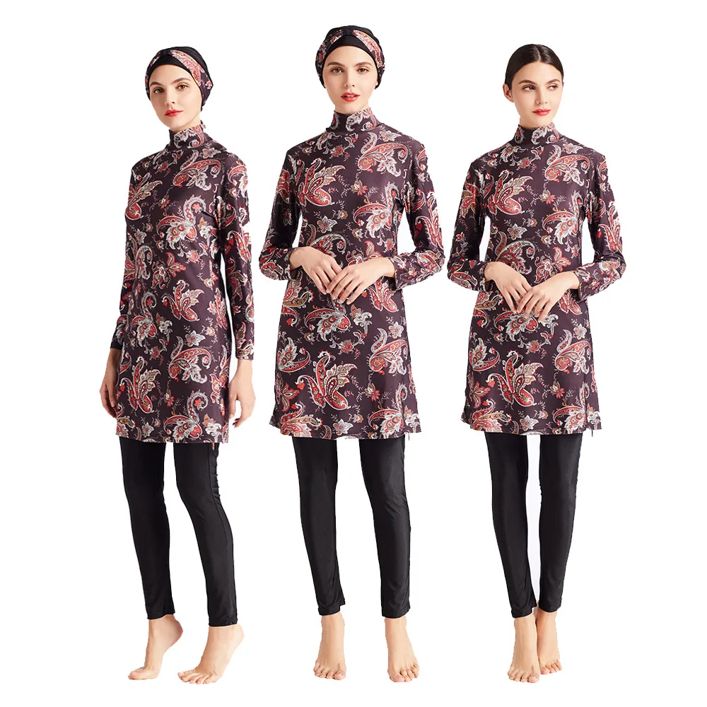 Мусульманский купальник с принтом, консервативный плотный купальник, комплект из 3 предметов, Burkini, скромный Исламский купальник для девочек, Арабская рубашка с длинными рукавами