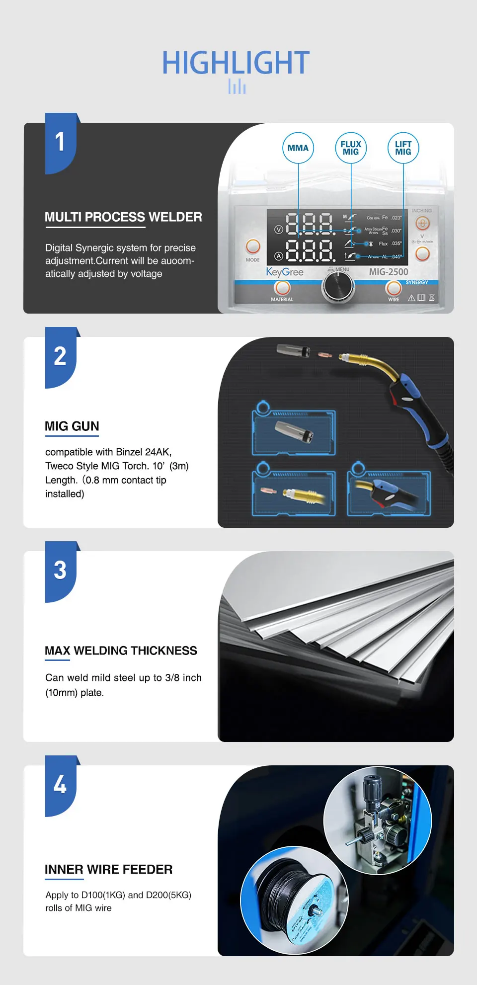 Отзывы о Keygree Mig-2500 220v 3 In 1 Gasless Arc mig Tig Solder wire aluminium Semi-automatic Device For Welder Mig Welding Machine Инструменты