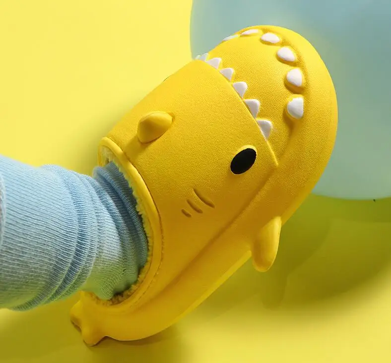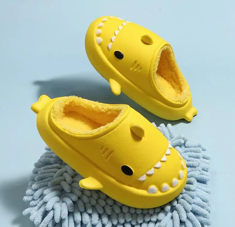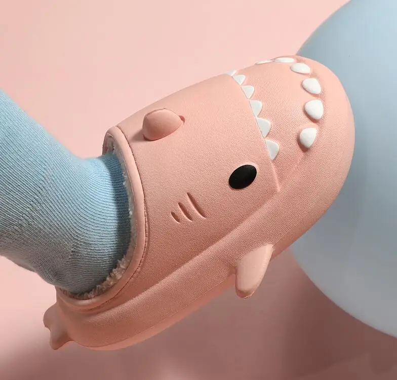 Отзывы о Симпатичные Мультяшные хлопковые тапочки с акулой детская теплая зимняя обувь