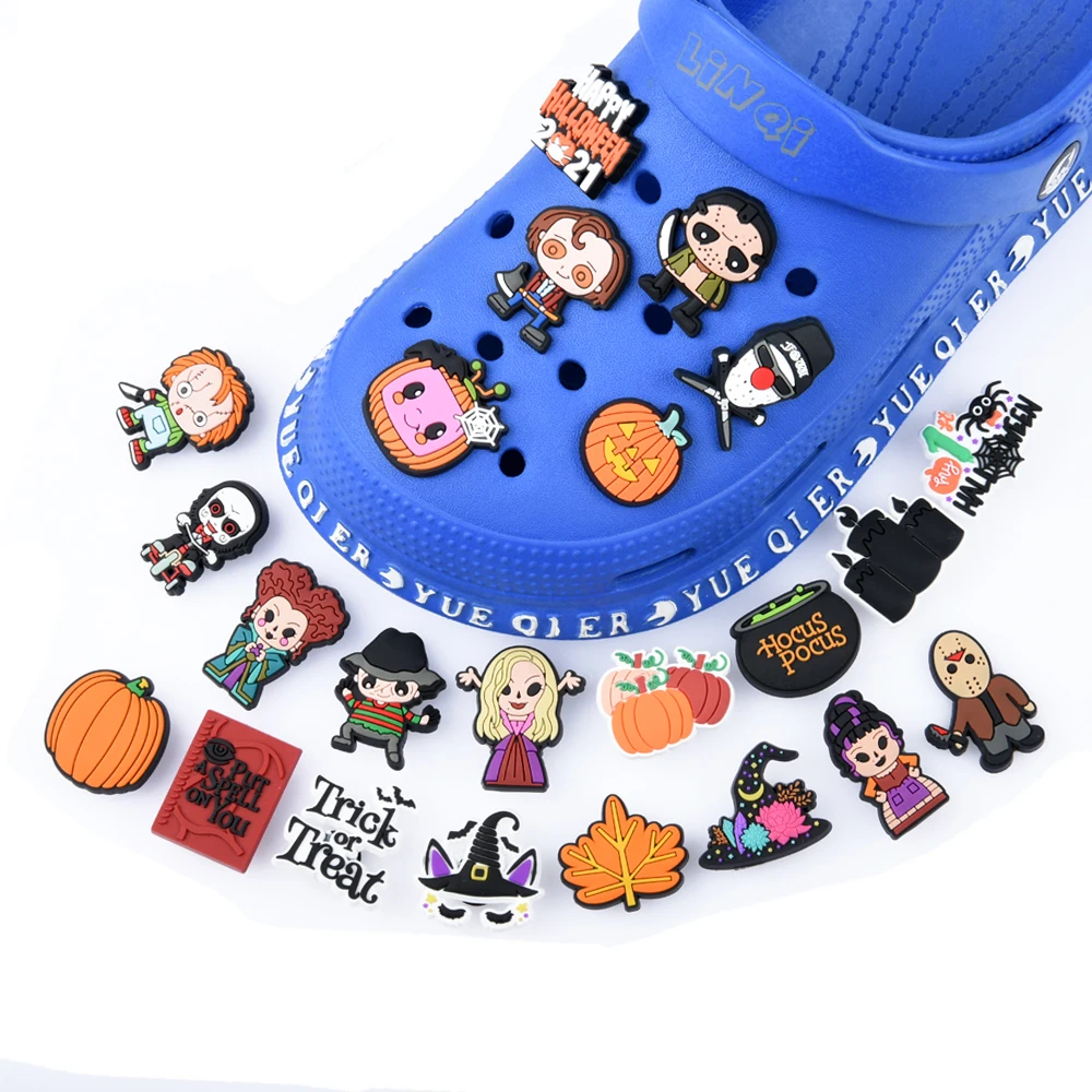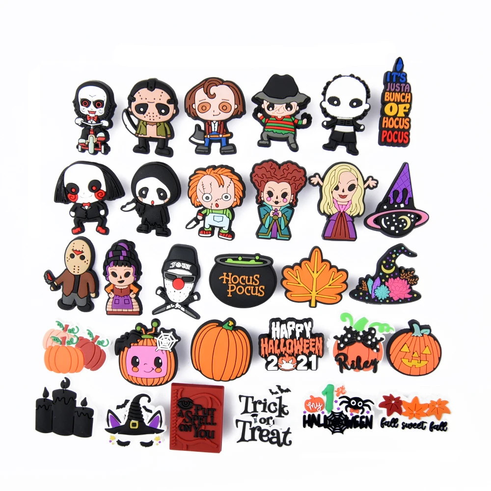 1 шт., обувь для Хэллоуина, очаровательные украшения Croc JIBZ, мультяшная кнопка для фильма ужасов, для сабо, аксессуары для сандалий подарок на вечеринку в честь Хэллоуина