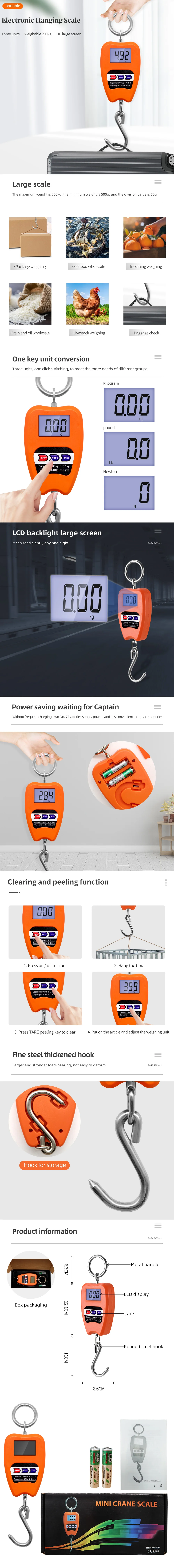 4. Подходит для взвешивания предметов, которые трудно разместить на платформе, идеально подходит для промышленного, сельского хозяйства, домашнего использования, багажа, посылок, рыбалки, охоты и других тяжелых объектов.
