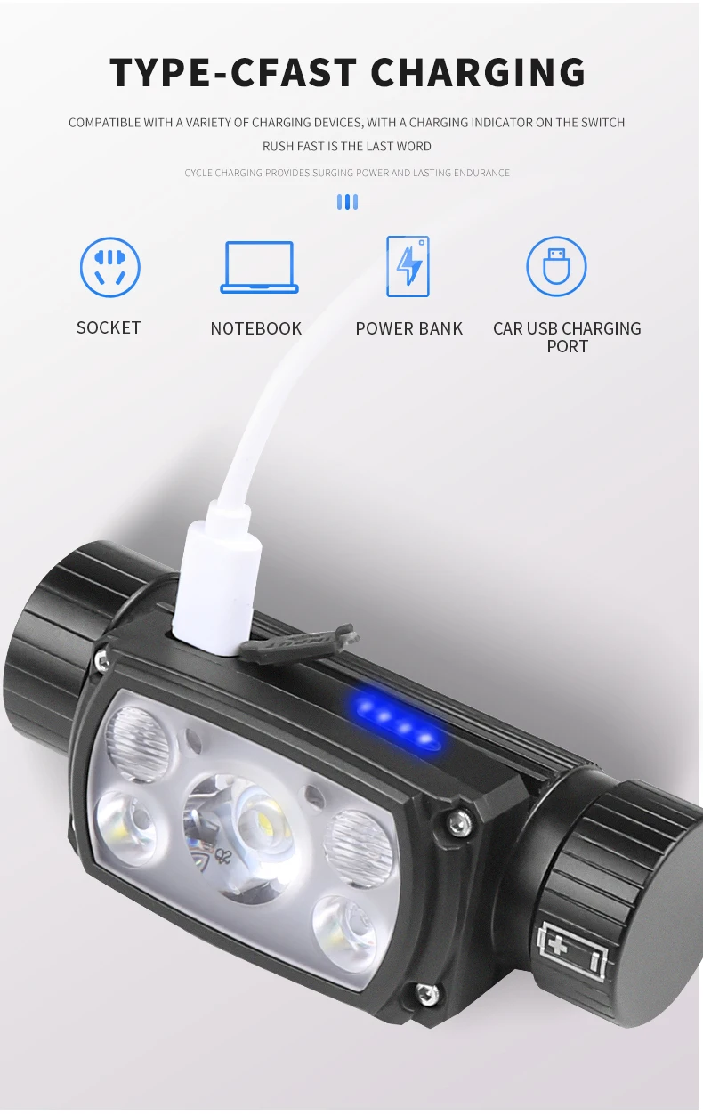 Отзывы о Мощный светодиодный налобный фонарь лм с датчиком XHP50 магнитной работой для