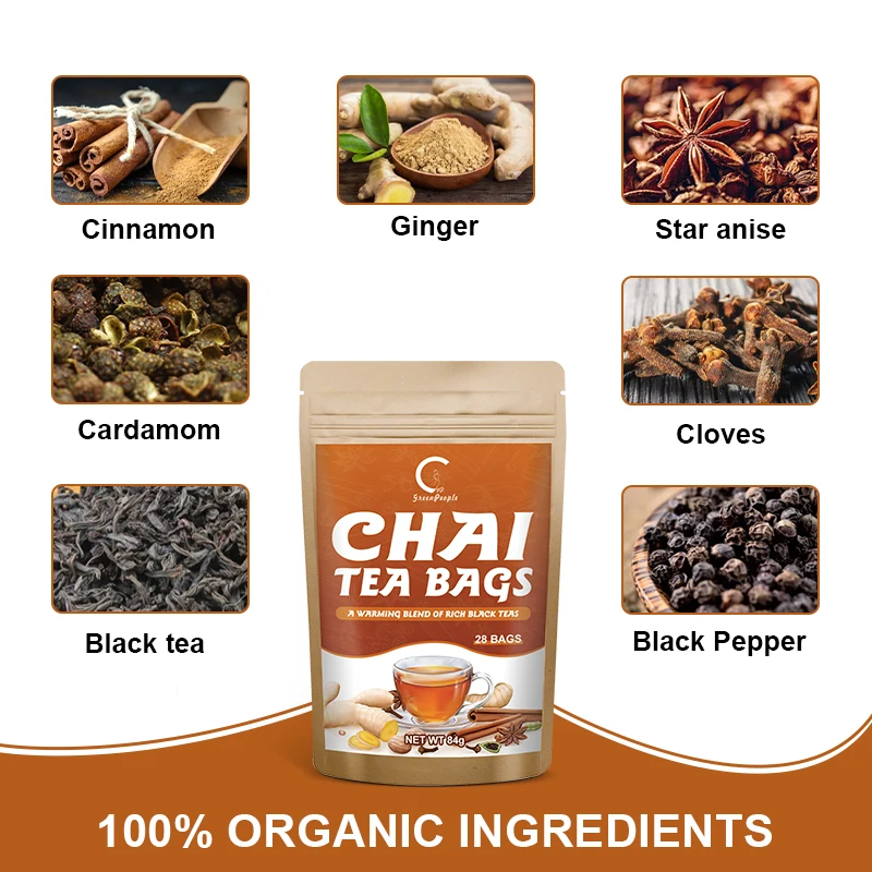 GPGP Greenpeople Chai красный чайный пакетик индийский тонизирующий почек масала Корица кардамон гвоздики имбирь черный перец продукт для похудения
