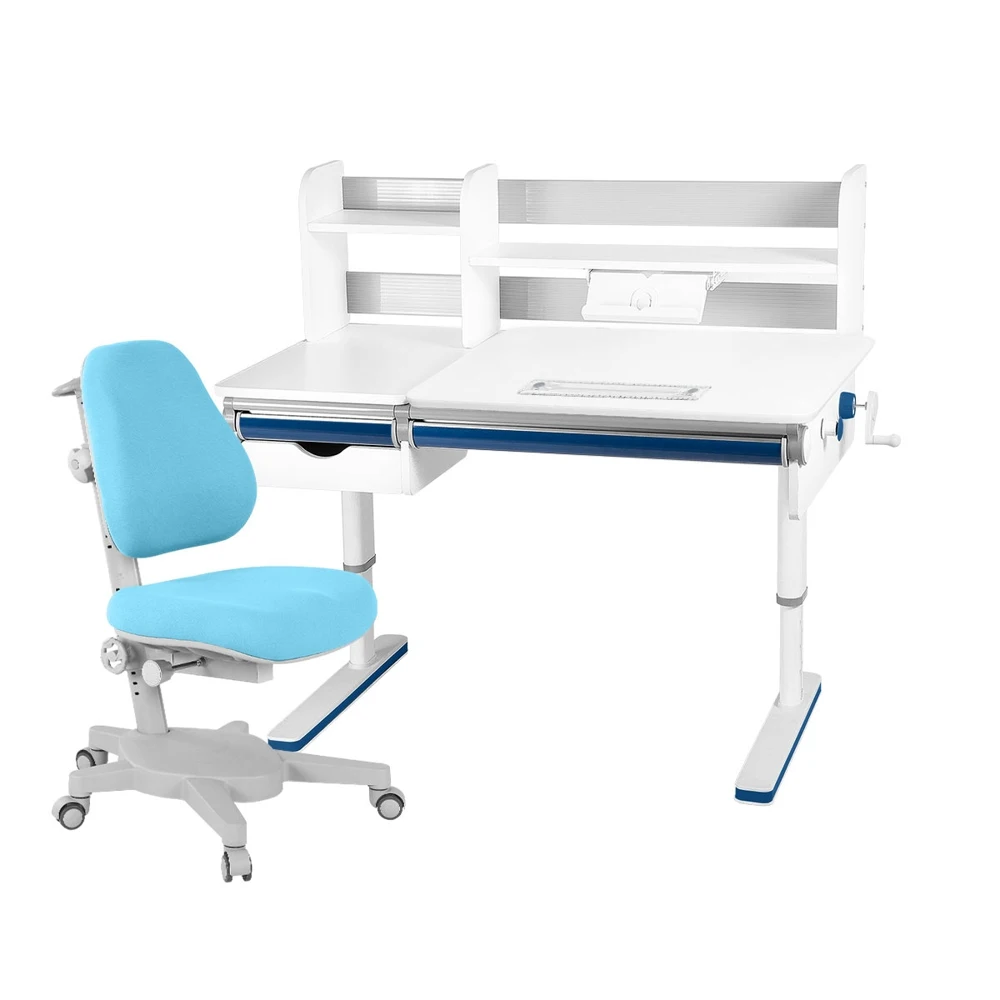 Комплект Anatomica Premium-50 парта + кресло + надстройка + выдвижной ящик cерый/голубой/розовый c креслом Armata