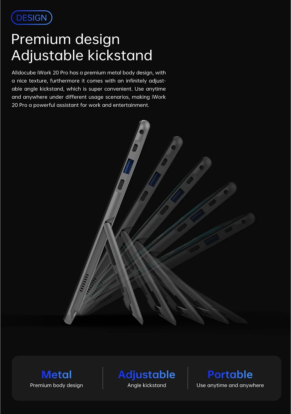 ● Прочный металлический корпус, регулируемая подставка, портативный и более удобный