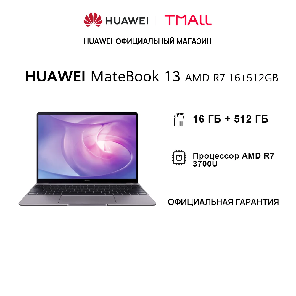 Ноутбук HUAWEI Matebook 13 AMD R7 3700U 16 ГБ+512 ГБ SSD Radeon Vega 10 Windows 【Ростест Доставка от 2 дней】 - купить