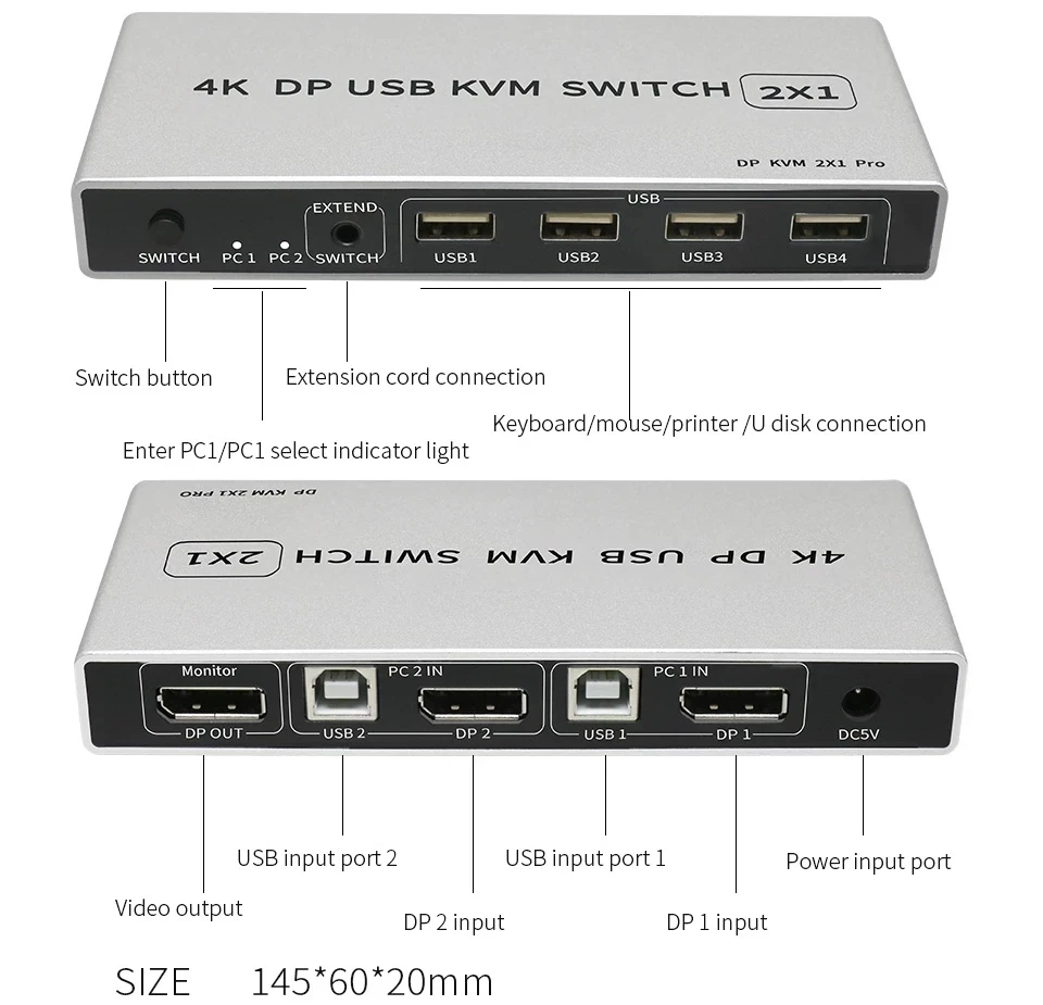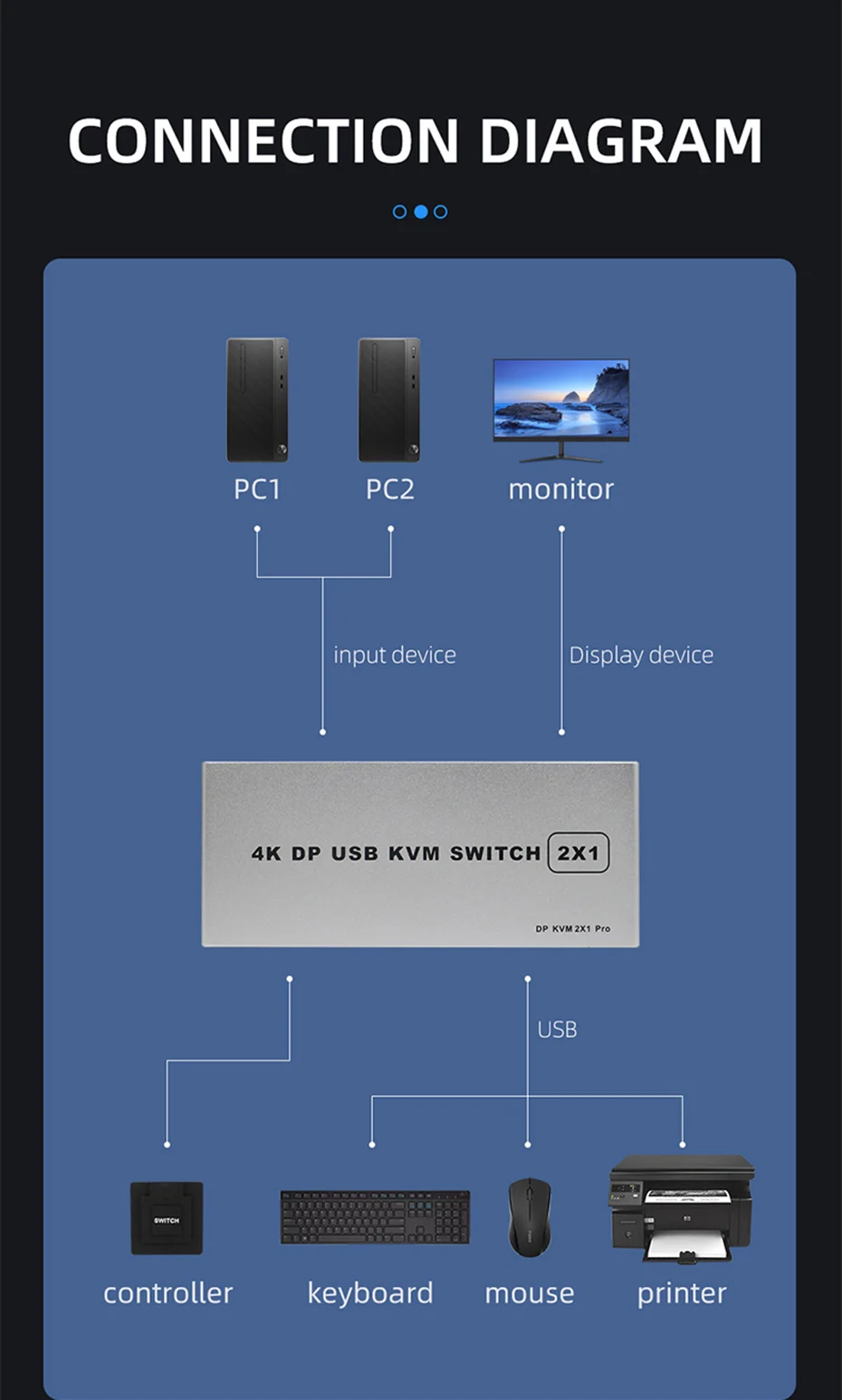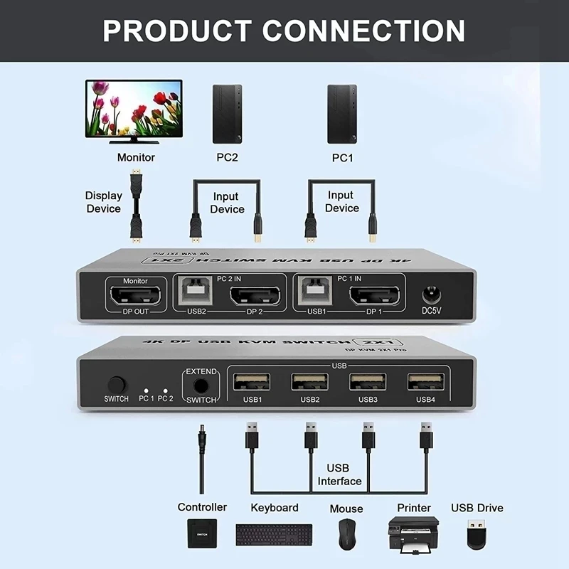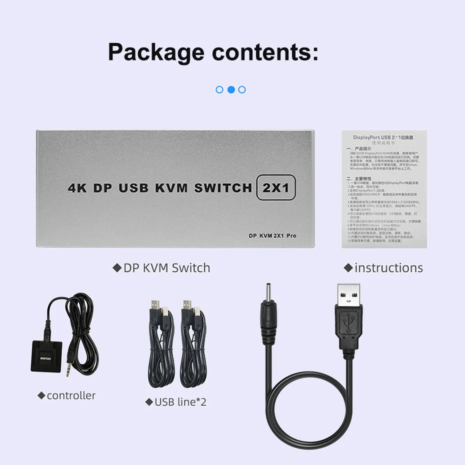 KVM-консоль 2 в 1 с двумя портами 8K @ 60 Гц USB-консоль переключатель портов дисплея KVM DP - купить
