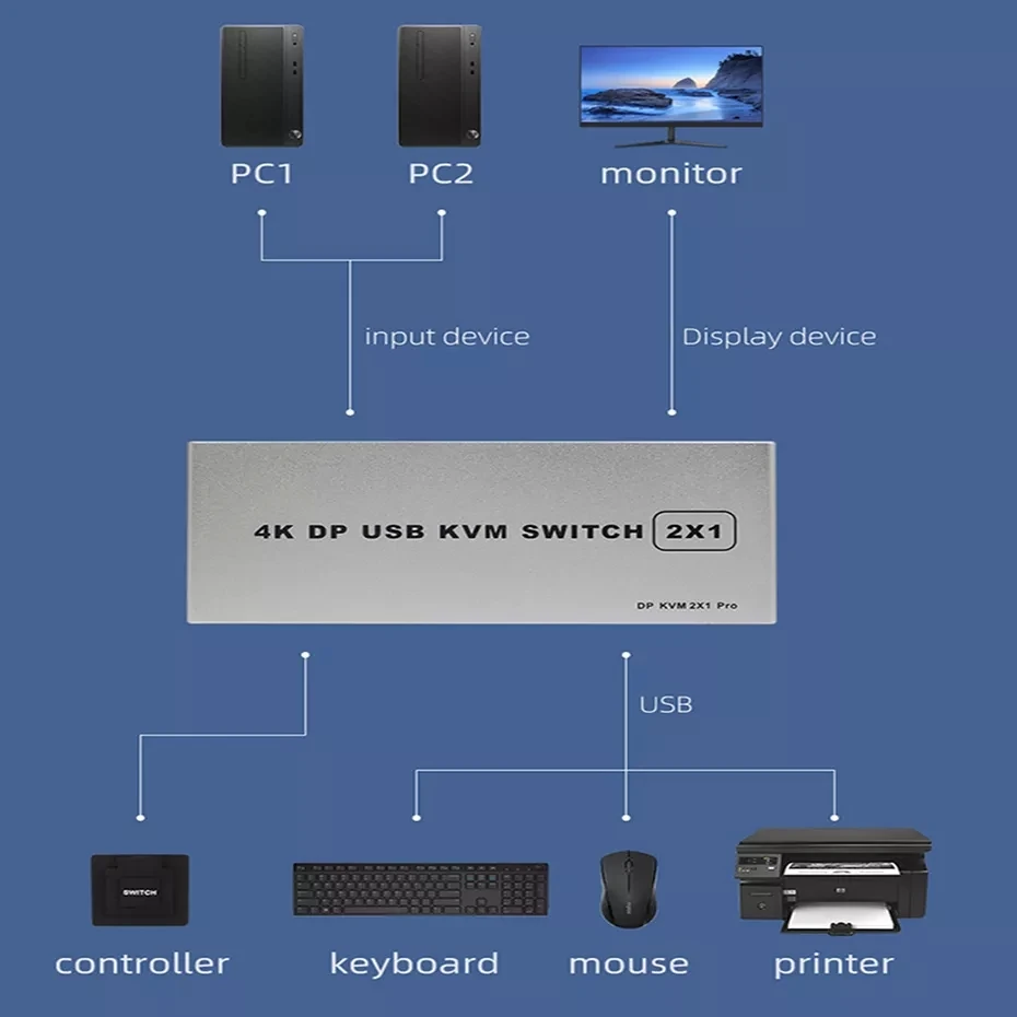 Набор переключателей KVM имеет два usb-концентратора, один набор клавиатуры и мыши, 2 хоста ноутбука или игровой консоли. Реализовать 2 в 1 out