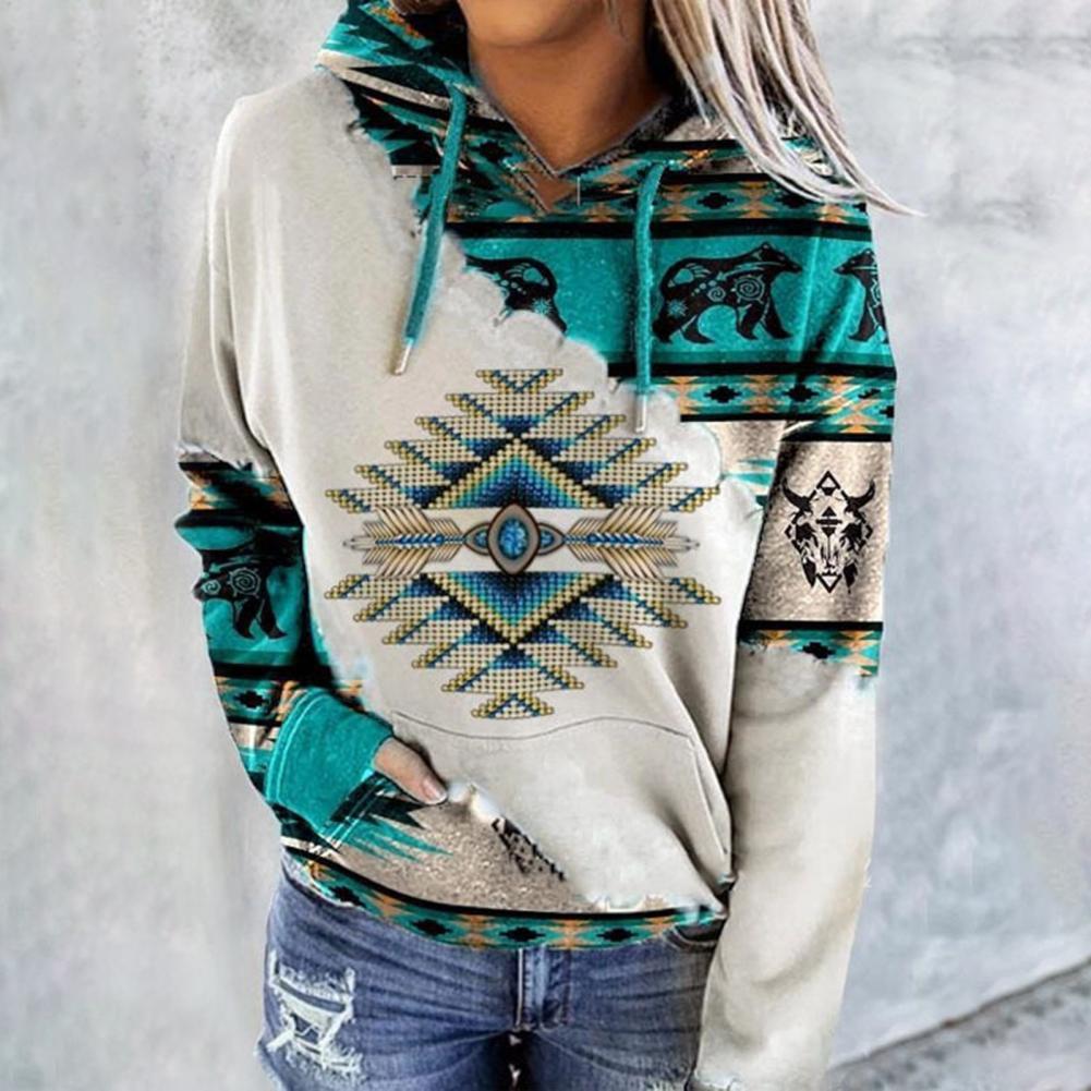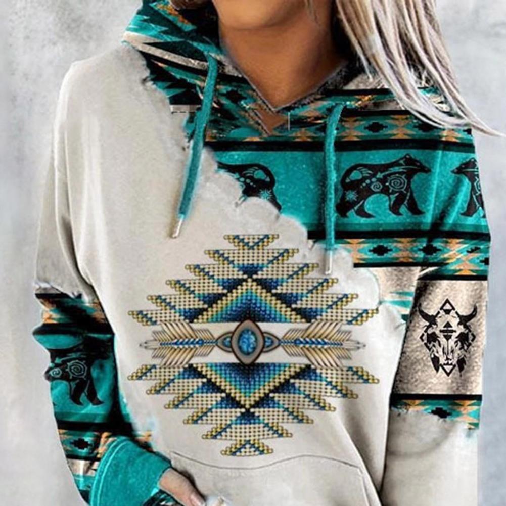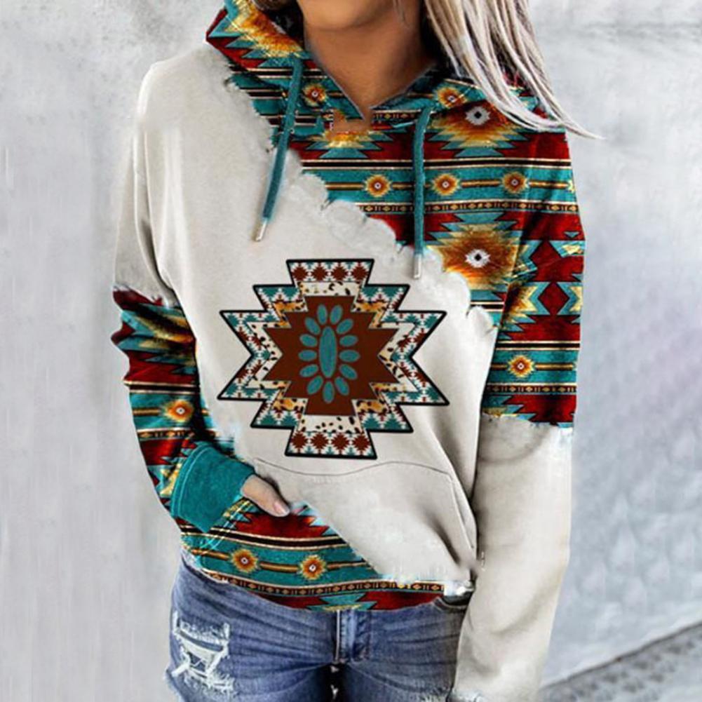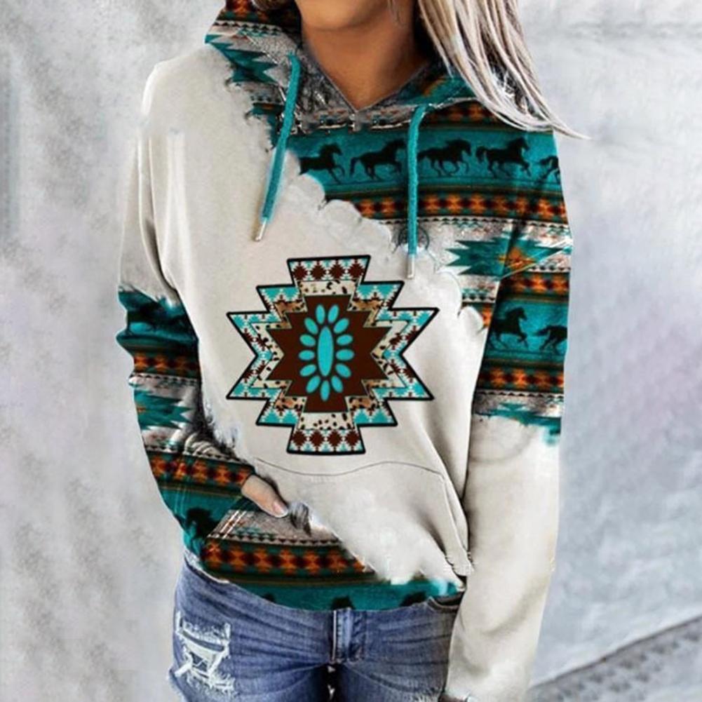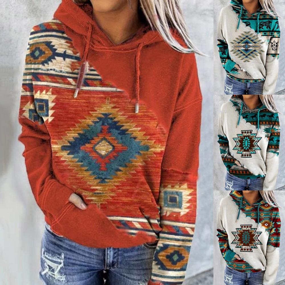 Женская толстовка, свободные женские толстовки, дышащая универсальная Толстовка в этническом стиле с принтом, Женская толстовка для повседневной носки
