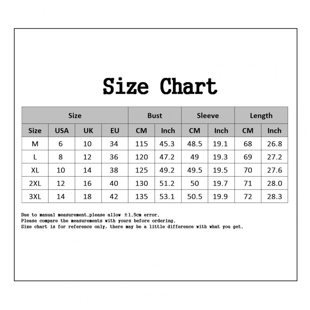 Размер: 3XL, рукав: 50,5 см/19,9 ", обхват груди: 135 см/53,1", Длина: 72 см/28,3 "(прибл.)
