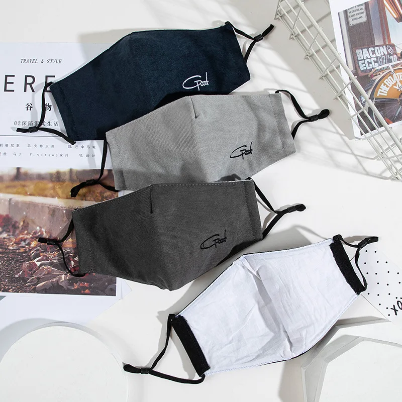 Моющаяся хлопковая Маска для лица взрослых однотонная Тканевая с принтом букв - купить