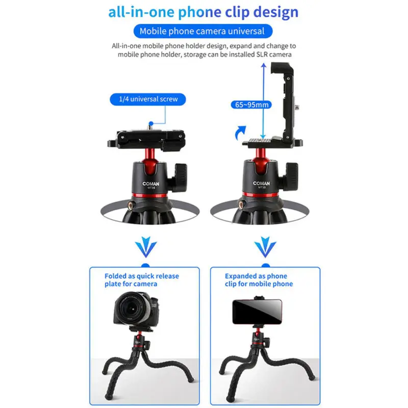 Гибкий штатив для телефона Coman Octopus Slr Dslr камера с зажимом шаровая Головка Для - купить