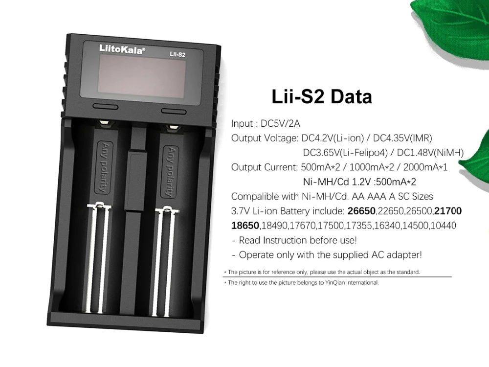 2. Зарядное устройство делится на полный комплект и стандартный набор. Полный комплект Lii-S2 оснащен вилкой, а стандартный набор Lii-S2 не имеет вилки, поэтому вам нужно приобрести его отдельно.