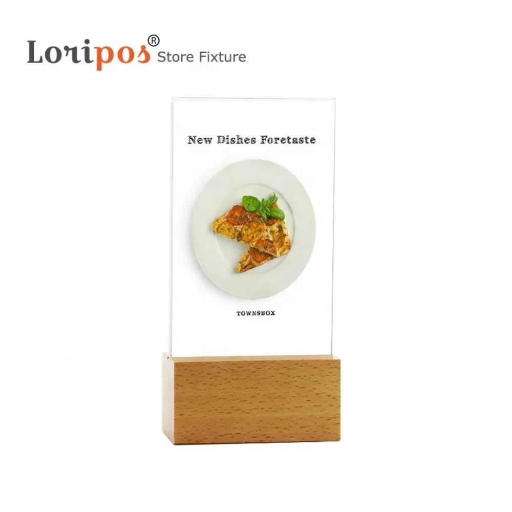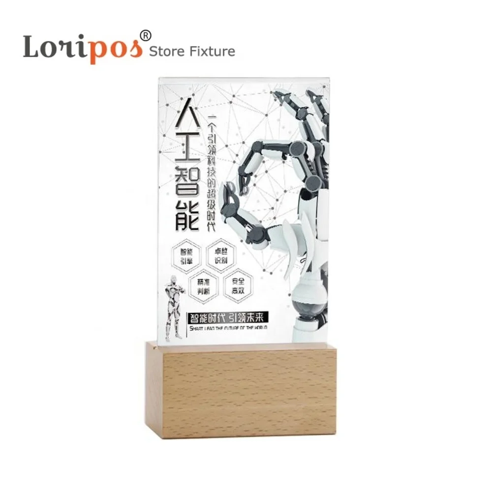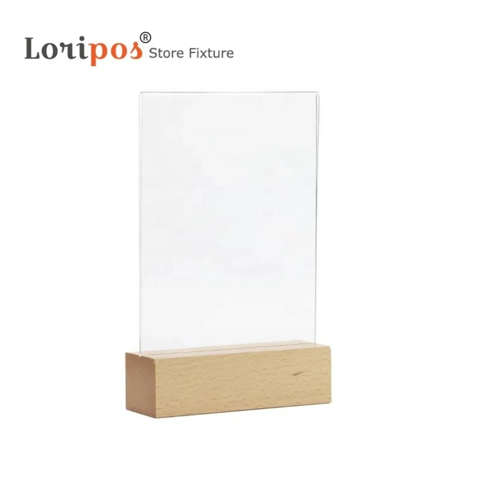 Функция: Прозрачный Акриловый Вертикальный держатель знака с деревянной основой
