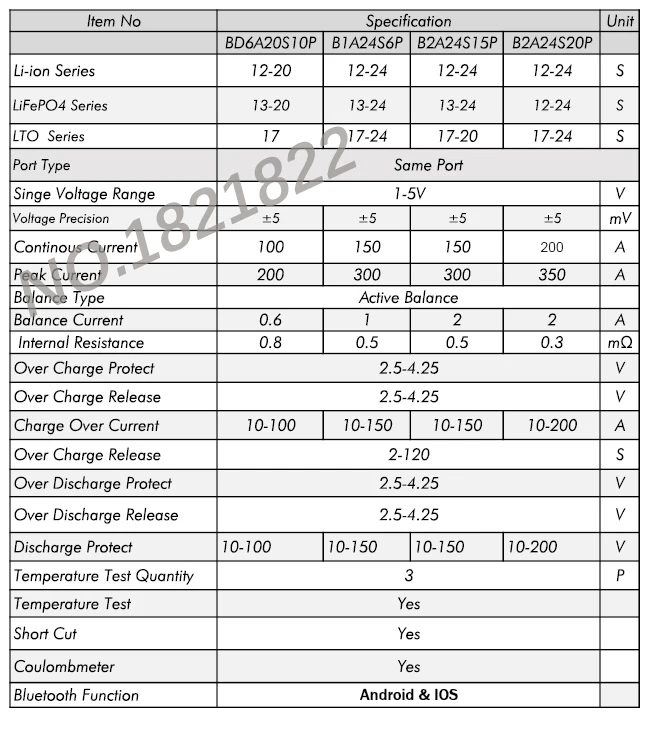 Каждая ячейка должна соответствовать задолго до установки BM (внутренние различия в сопротивлении батареи в пределах 5 миллиом, напряжение в пределах 0,03 в, емкость варьируется в пределах 50 мА · ч). Lfepo4 cell, напряжение между 2,6 V ~ 3,5 V, li-ion cell, напряжение между 3 ~ 4V.
