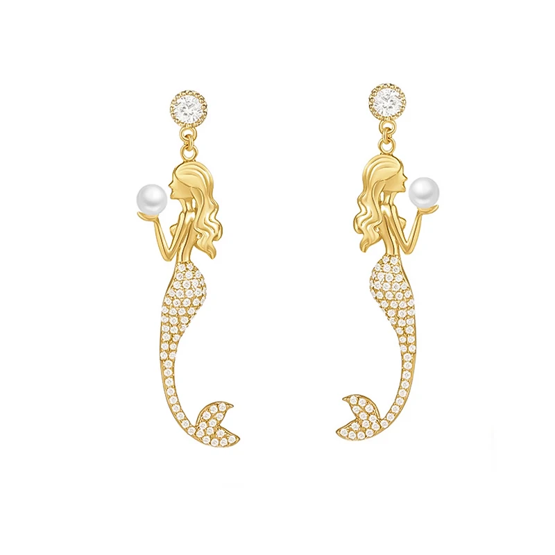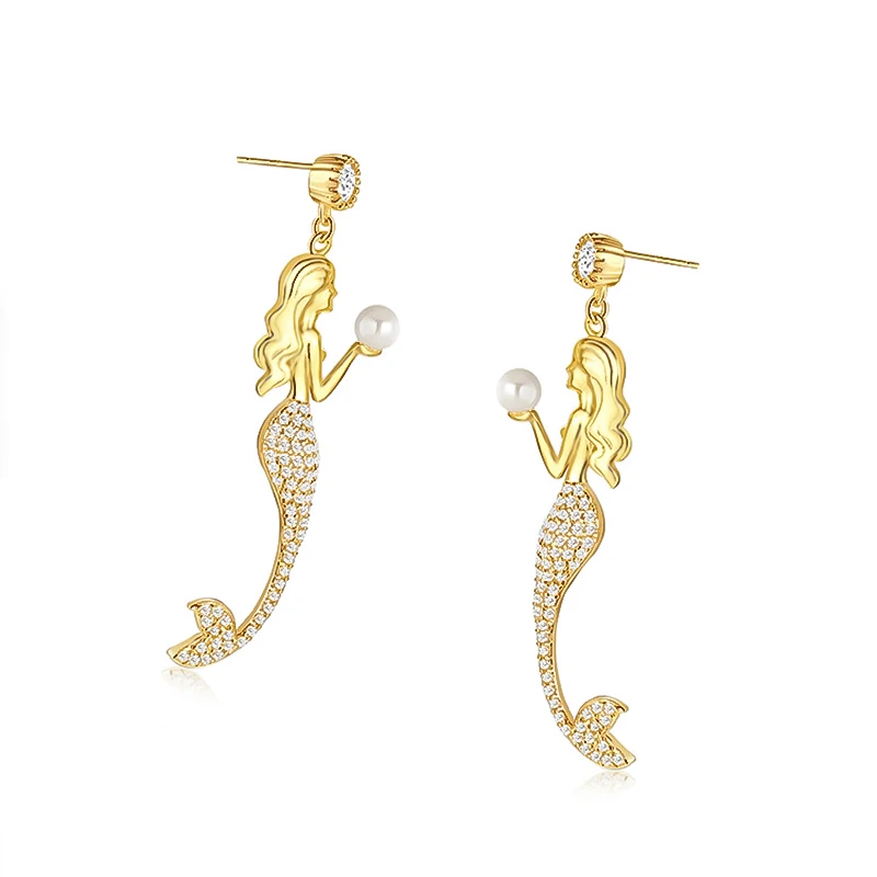 Милые стразы серьги-капельки с кристаллом русалки и жемчугом для женщин - купить